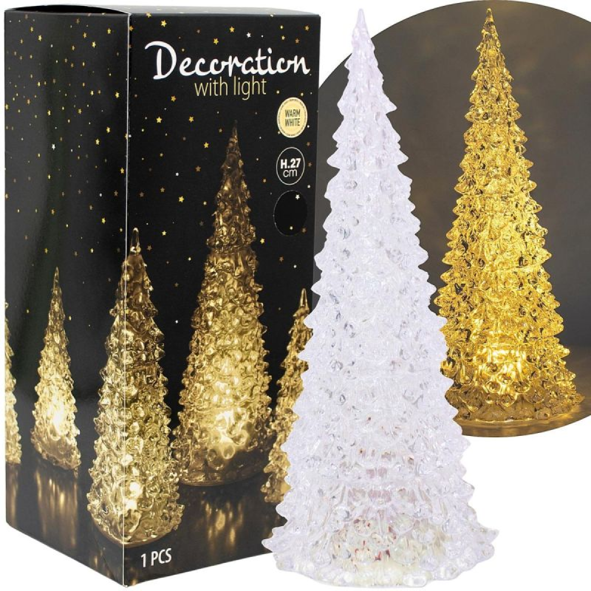 DECORATIVE CHRISTMAS TREE TRANSPARENT LED WARM WHITE 27CM