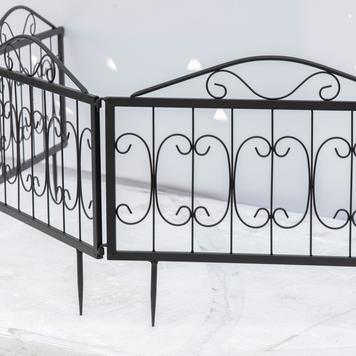 Better decorative function: The curved line and elegant pattern endow the fencing barriers a touch of charm and vogue, providing additional novelty to your garden or yard. This practical fencing could help you build an ideal garden to plant vegetables or flowers, allowing you to fully cast gardening talent and keep stray dogs away from your plants.Flexible Setting: By using the interlocking mechanism, each fence panel can be joined to another, allowing you to combine them however you like. In order to meet your specific needs for designing your private outdoor space, you can also splice or circle into various shapes.Easy to Install: No additional tools required to install this patio landscape edging animal barrier fence, just assemble the pointed pole ends and insert the poles easily into soil or grass.Outdoor ready: Made of metal with powder coated surface to withstand outdoor elements like rain, dust, droppings, etc.Product info: Overall Dimension: 224W x 46Hcm. Easy assembly required.