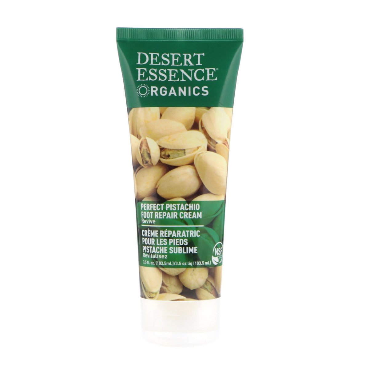 Revive NSF (Contains Ingredients) 100% Vegan / Wheat & Gluten Free Certified to NSF/ANSI 305 by QAI Leaping Bunny Certified Pamper your feet with Desert Essence s Perfect Pistachio Foot Repair Cream. Contains Pistachio Oil, Fair Trade Shea Butter, and Macadamia Nut Oil to smooth and help revive rough, dry feet. Cruelty Free and Biodegradable Formula: No animal testing of raw materials or finished product. No Phosphates.
