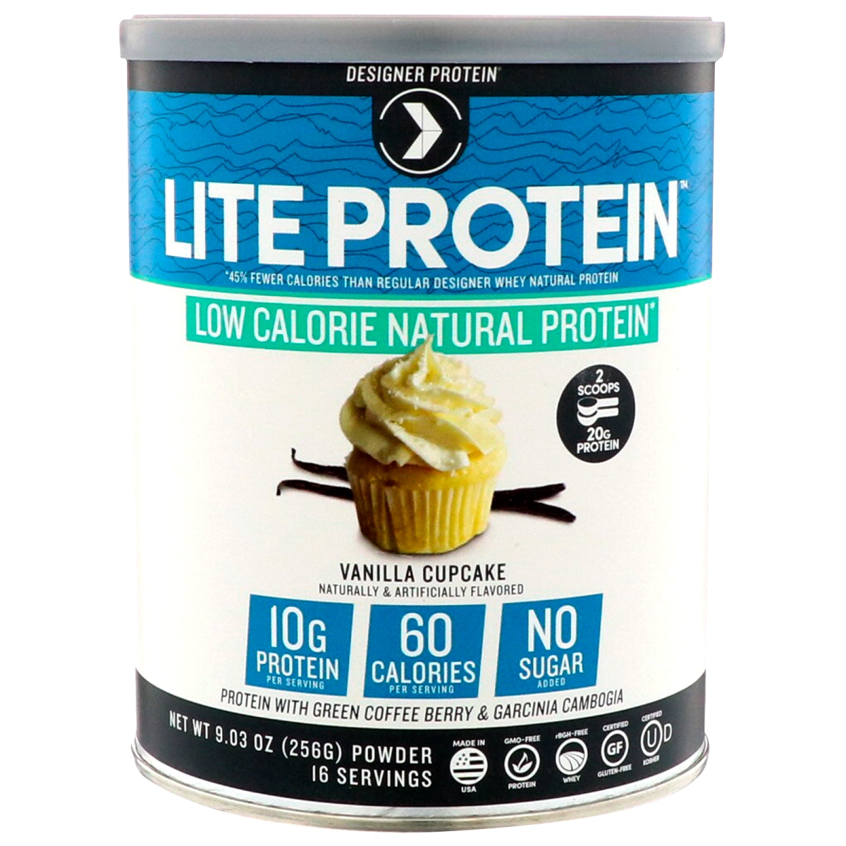 *45% Fewer Calories than Regular Designer Whey Natural Protein Naturally & Artificially Flavored 2 Scoops = 20 g Protein 10g Protein per Serving | 60 Calories per Serving | No Sugar Added Protein with Green Coffee Berry & Garcinia Cambogia 16 Servings GMO-Free Protein rBGH Free Whey Certified Gluten Free Certified Kosher Leading Protein-Rich Nutrition Since 1993 Low Calorie Protein Powder with Added Weight Management Benefits Designer Protein is a leader in high quality nutrition products. Our range includes proteins and superfoods designed for fitness, performance, weight management & overall wellness. Get Lean Without All The Calories Just 60 calories per serving and 45% less than our regular natural whey protein 10 g Complete, Natural Protein 20% of your daily protein in every serving helps build & maintain a lean, toned body. No Added Sugar & Fat Free Helps support weight management. Prebiotic Fiber 4 g of Fiber for Digestive Health and to help you feel full. Vitamins & Minerals A good source of B-Vitamins, Vitamin D and Calcium which help metabolize food and support bone health. Our GMO-Free Whey Protein is free of artificial growth hormones & antibiotics. Our soy is natural & GMO-Free. Unlike hydrolyzed soy often used in other protein products, our soy is the "good-for-you" non-hydrolyzed form of soy that offers multiple health benefits, particularly, to women.