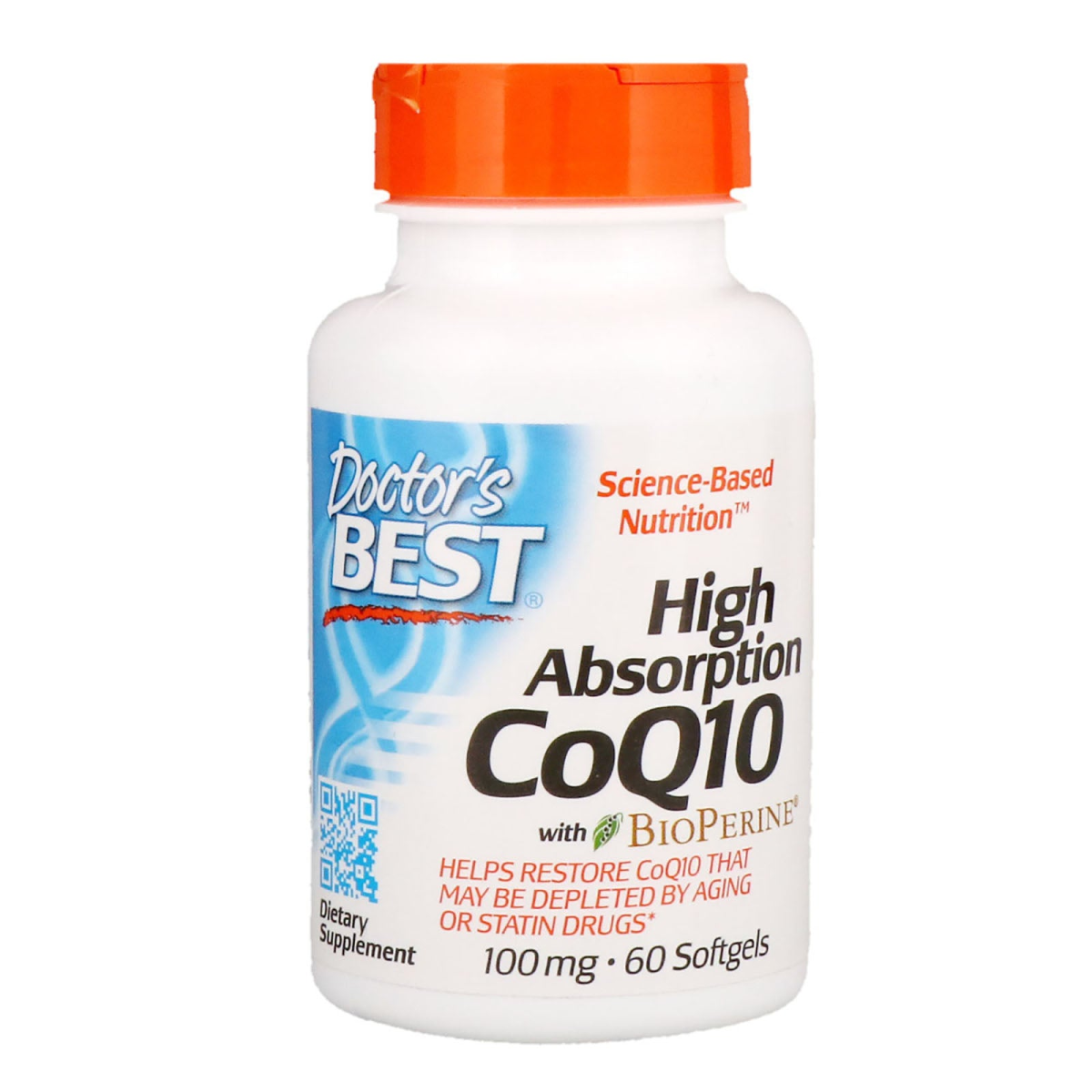Science-Based Nutrition Helps Restore CoQ10 That May Be Depleted by Aging or Statin Drugs Dietary Supplement Gluten-Free USP Verified, Naturally Fermented CoQ10 Doctor's Best High Absorption CoQ10 contains pure coenzyme Q10 (Ubiquinone) plus BioPerine. CoQ10 helps support heart function and helps promote energy production in the cells. It is vital to the production of ATP (adenosine triphosphate), especially in the heart. Stress, free radicals, statin medications and aging can impact CoQ10 levels. CoQ10 is very important for the creation of energy, muscular contraction and the synthesis of protein. Studies have shown that BioPerine increases CoQ10 absorption. Helps promote cardiovascular health and cellular energy. Helps restore CoQ10 that may be depleted by aging and cholesterol lowering drugs (statins). Helps provide energy for those feeling occasional fatigue. Formulated with BioPerine black pepper extract to enhance absorption and bioavailability.