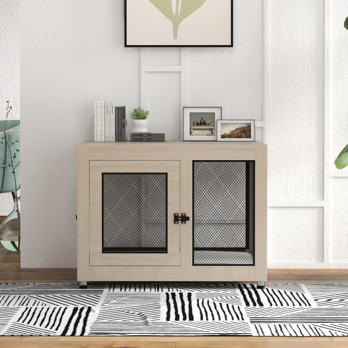 Dog Kennel Furniture End Table w/ Two Doors, Soft Cushion for Large, Medium Dogs