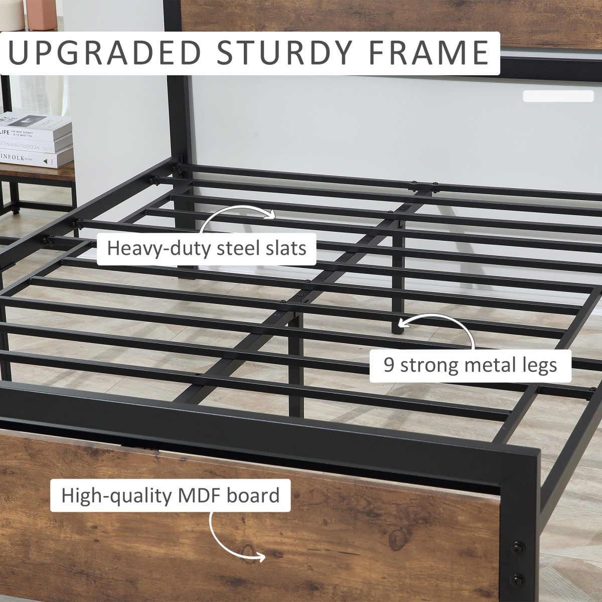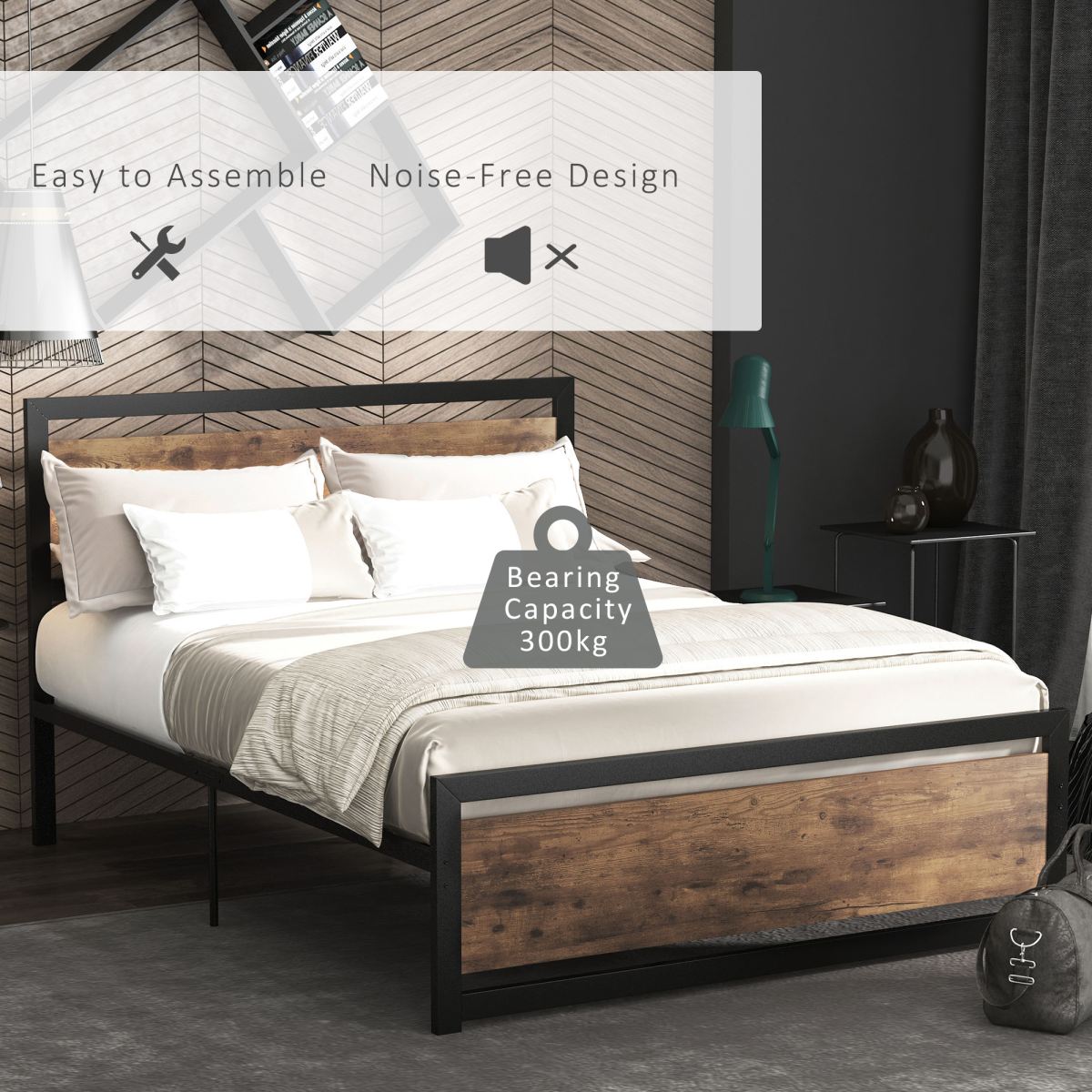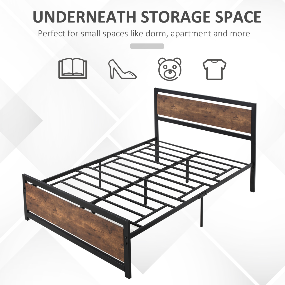 INDUSTRIAL LOOK: Classic black metal bed frame with vintage rustic wooden headboard and footboard riches your bedroom in industrial and unique individualismMEET YOUR NEEDS: Single size is great for kids and teenagers or those whose room is small with limited space