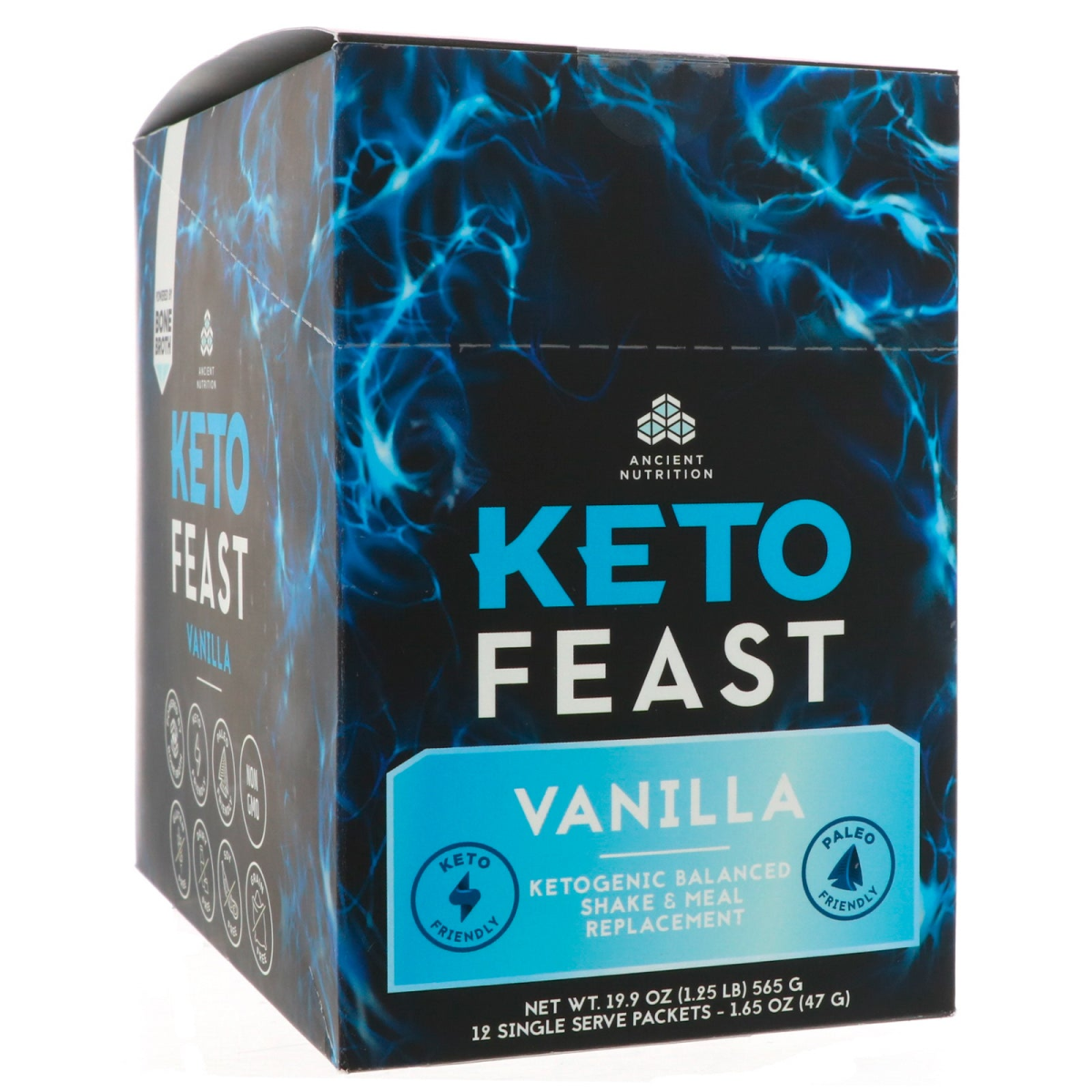 Dr. Axe / Ancient Nutrition, Keto Feast, Ketogenic Balanced Shake & Meal Replacement, Vanilla, 12 Single Serve Packets, 1.65 oz (47 g) Each