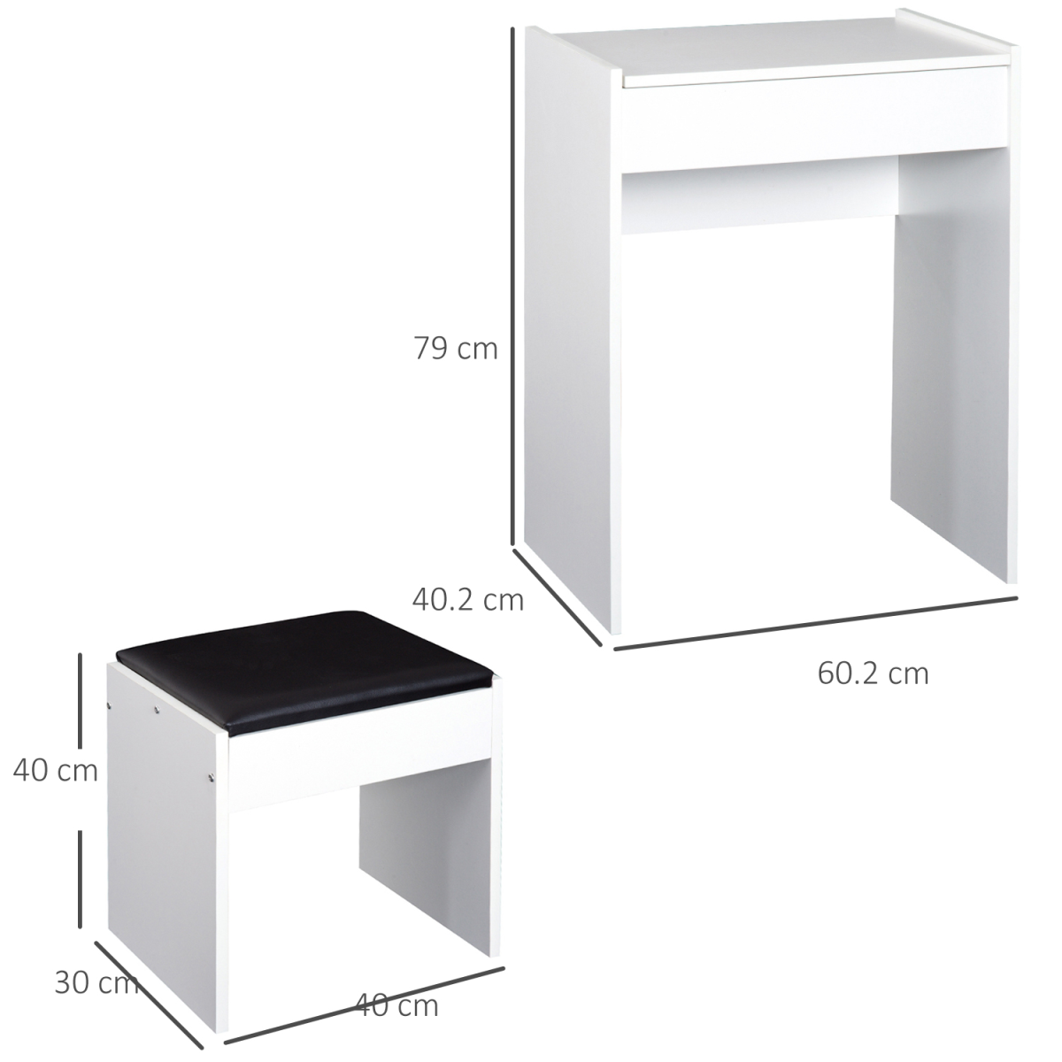 Dressing Table Set Padded Stool Flip-up Mirror Multi-purpose - White