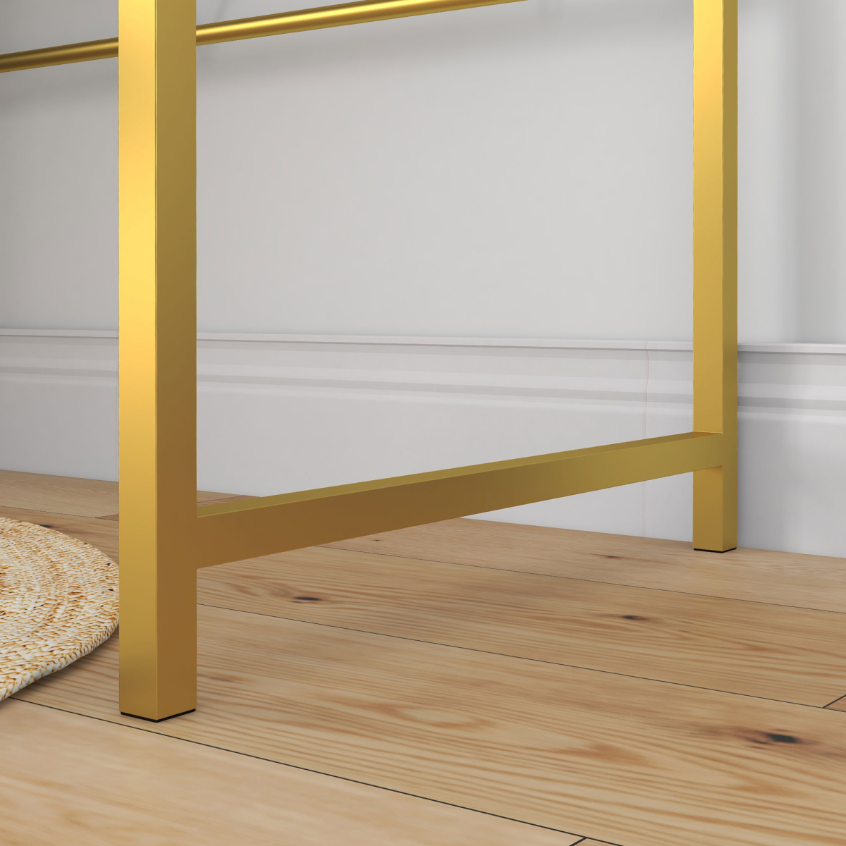 Dressing Table with Round Mirror, Vanity Makeup Desk Faux Marble Texture White