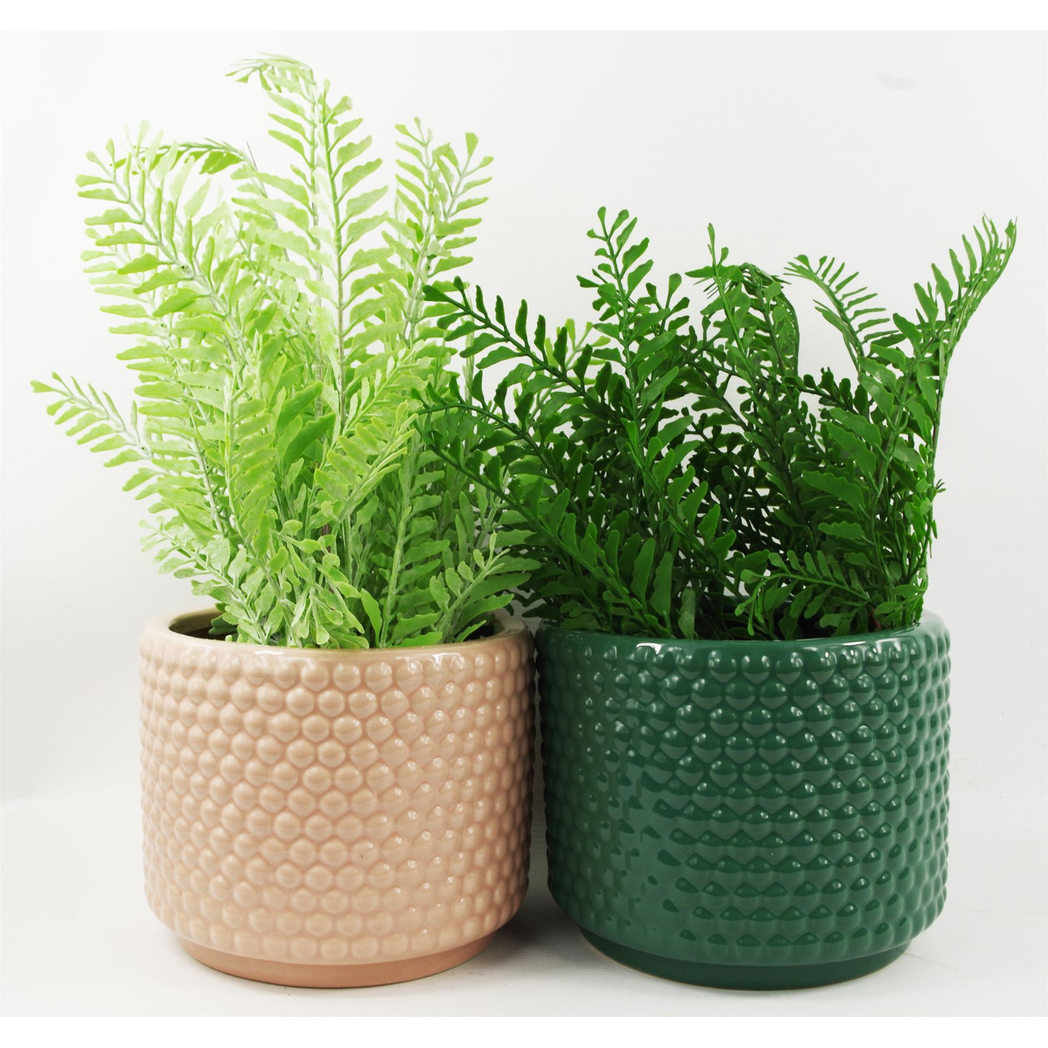 Luxurious Pink Raised Dots Ceramic Plant Pot, measuring 15 (w) x 15 (d) x 12.5cm (h), is a stunning addition to any indoor space. This exquisite piece features a charming green dots design that effortlessly complements our artificial plant collections. Elevate your decor with this elegant pot, perfect for showcasing both artificial and real plants in style. Please note, plant is not included.