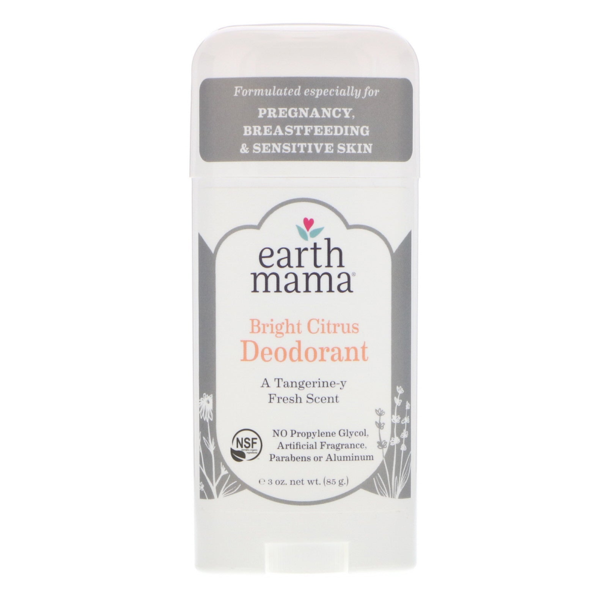 Formulated Especially for Pregnancy, Breastfeeding & Sensitive Skin A Tangerine-y Fresh Scent NSF Contains Organic Ingredients No Propylene Glycol, Artificial Fragrance, Parabens or Aluminum Grounded in Nature, Powered by Love Certified to NSF/ANSI 305 by Oregon Tilth OTCO We like the idea of a vibrant, vivacious deodorant scent every day. The kind that makes you smile. Because why not? Why shouldn't deodorant make you smile? Right? This stick contains organic grapefruit, tangerine and calendula, formulated especially for pregnant and breastfeeding people - but its effective for everyone. Only clean fresh ingredients.