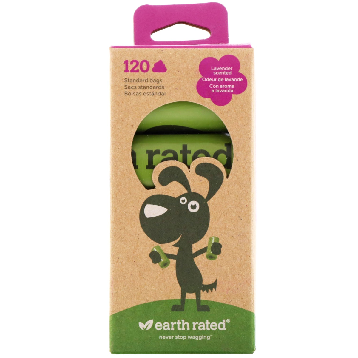 Standard Bags Never Stop Wagging 2 Month Supply Made with Recycled Cardboard Cores! Just Pennies per Poop! Extra Strong for Poops of All Sizes Extra Long 9 x 13 Inch Bags Lavender-Scented for a Pleasant Pickup This refill pack includes 8 rolls of 15 lavender-scented bags which can be used on their own or with our cute green-colored dispenser. These bags are easy to open and detach from the roll, while still being extra thick and tough!