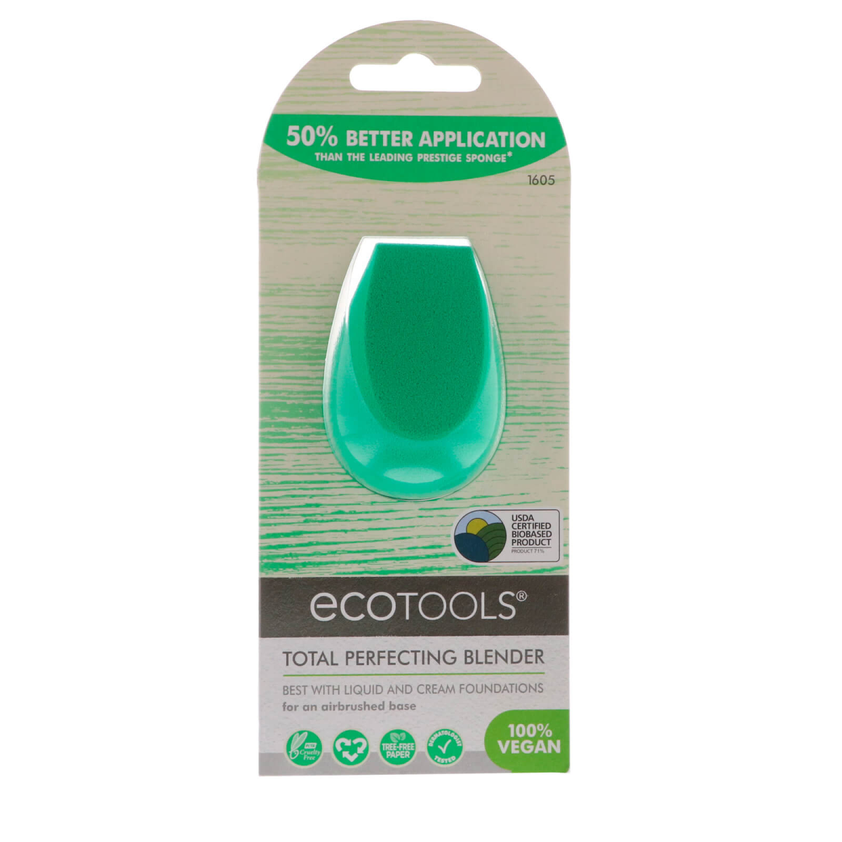 50% Better Application Than The Leading Prestige Sponge* USDA Certified Biobased Product Best with Liquid and Cream Foundations For An Airbrushed Base Cruelty Free Dermatologist Tested 100% Vegan Look Beautiful. Live Beautifully. Unlock Your True Beauty 5- Heavy Coverage The Total Perfecting Bblender is a soft, flexible sponge to blend-primer and foudation for flawless-looking skin. Unique EcoFoam Technology is a USDA Certified Biobased Product and made from 70% plant-based materials. *Based on comparative independent lab testing vs. the leading prestige sponge using global makeup.
