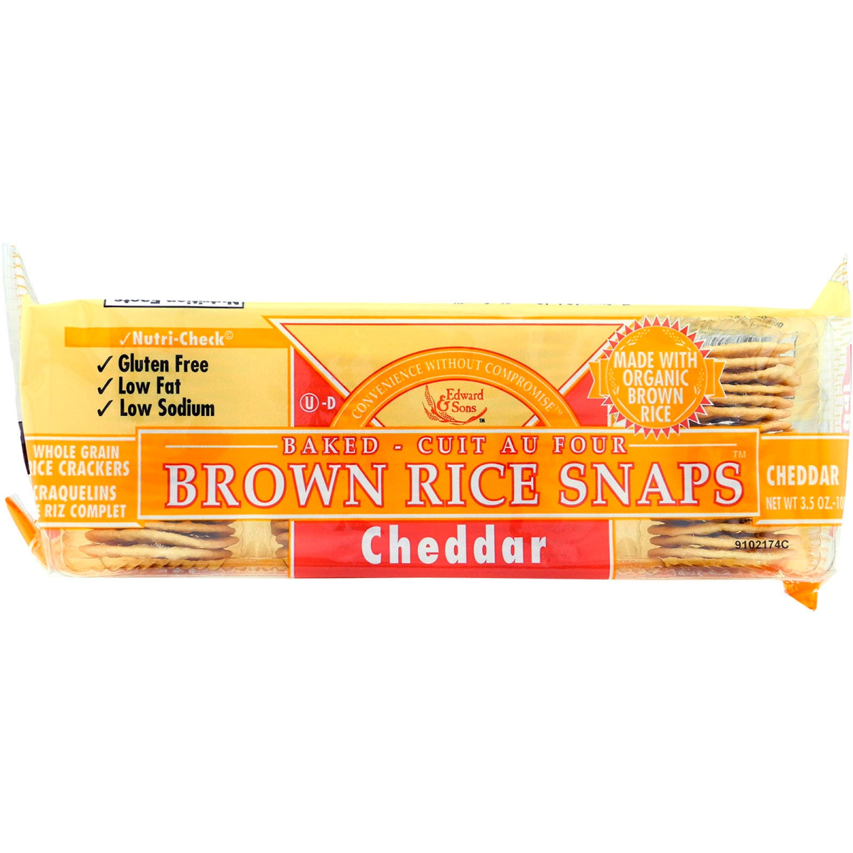 Edward & Sons, Baked Brown Rice Snaps, Cheddar, 3.5 oz (100 g)