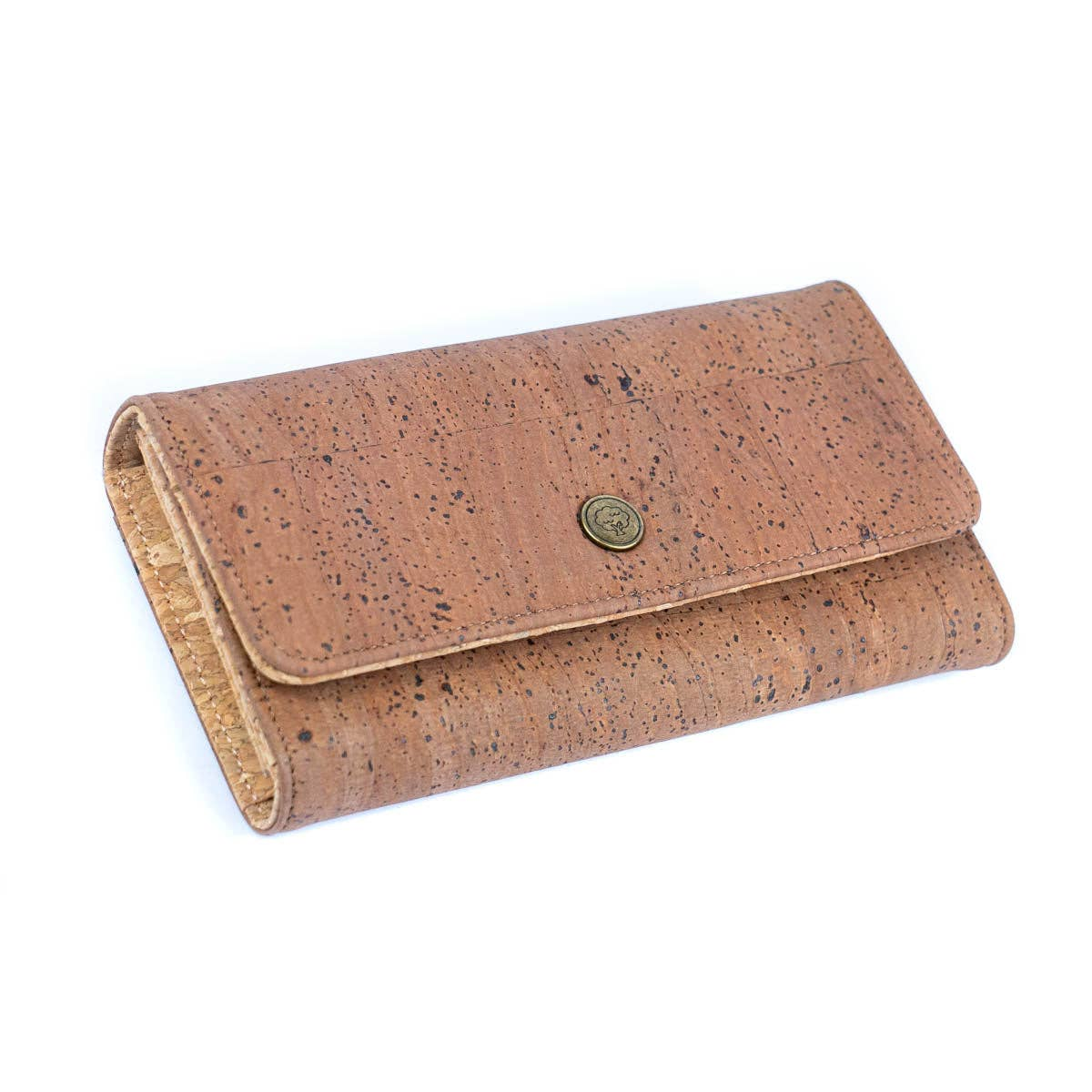 The exterior boasts a refined solid cork texture, complemented by a delicate antique bronze cork tree logo. Inside, the wallet features a dual snap closure for secure and convenient access. Designed to meet all your needs, this beautiful wallet includes: