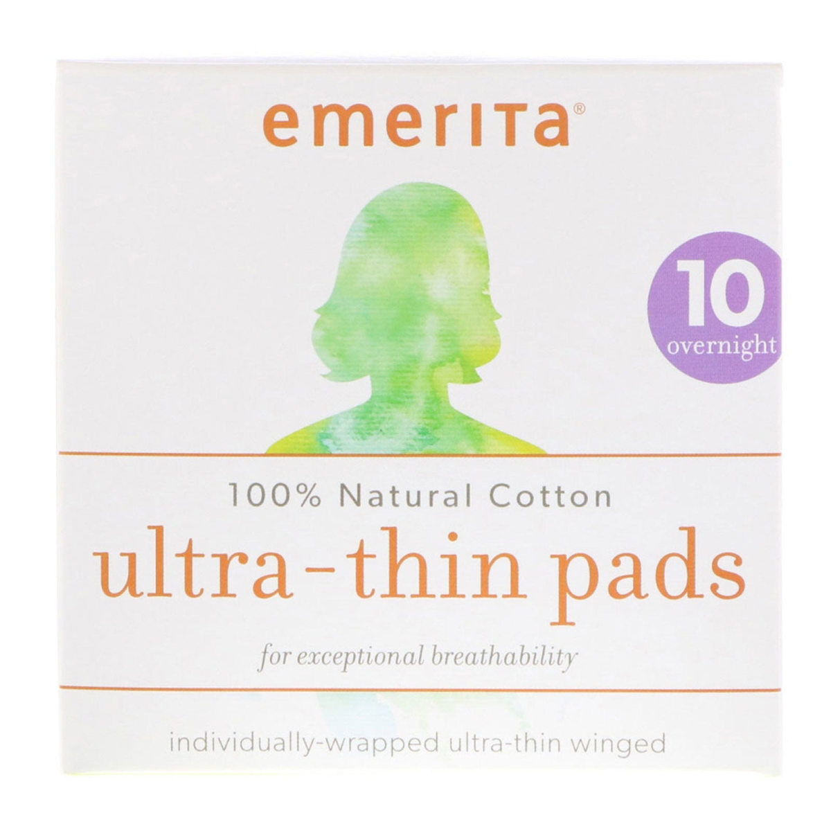 Chlorine-Free Perfume-Free No Cellulose-Wood Pulp 100% Natural Cotton For Exceptional Breathability Individually-Wrapped Ultra-Thin Winged Absorbent Core is 100% Breathable Cotton 100% Soft, Breathable Cotton Covershoot Wide Adhesive Strip Keeps it Secure Individually Raped Leak Guard Channels Winged for Extra Protection No Cellulose-Wood Pulp No Polymer Additives 100% Cotton - Core & Coversheets You wouldn't wear underwear, so why wear a pad that's not 100% natural, breathable cotton? What your put next to your skin matter. At Emerita, we've been improving the health and lives of women since 1978. What you put next to your skin matters The absorbent core and coversheet of our pads are made from 100% natural cotton. There's no cellulose wood-pulp filler, plastic coversheets or polymer additives. Cotton is naturally fluffy and breathable. Which is important because your vagina is a delicate ecosystem. It like good airflow to be its healthy best.