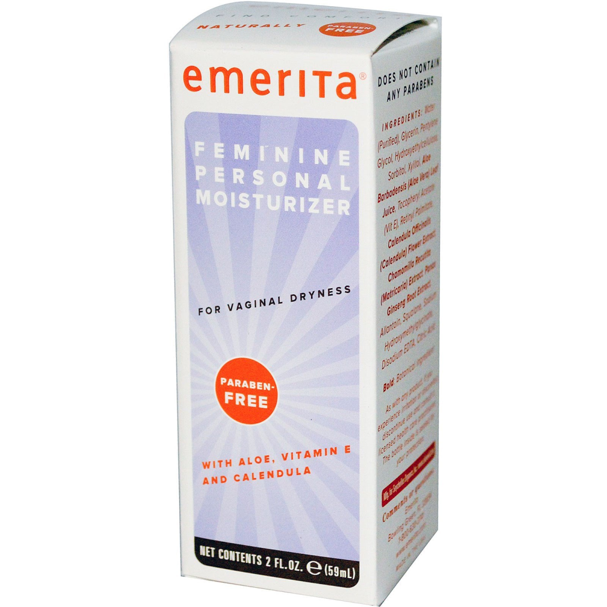 Find Comfort Naturally Paraben-Free With Aloe, Vitamin E and Calendula Our Personal Feminine Moisturizer is specially formulated by women for women to provide comfort and help restore delicate balance during perimenopause and menopause. Feminine Personal Moisturizer is water-based, unscented, flavorless and non-staining. What's in it: Aloe Vera, Calendula, Vitamin E and Ginseng create a superior moisturizer that helps maintain balance and comfort. Check the side of this box for a complete list of ingredients. Emerita is a leading brand of natural wellness products for women. We're proud to be women-operated. Since 1978