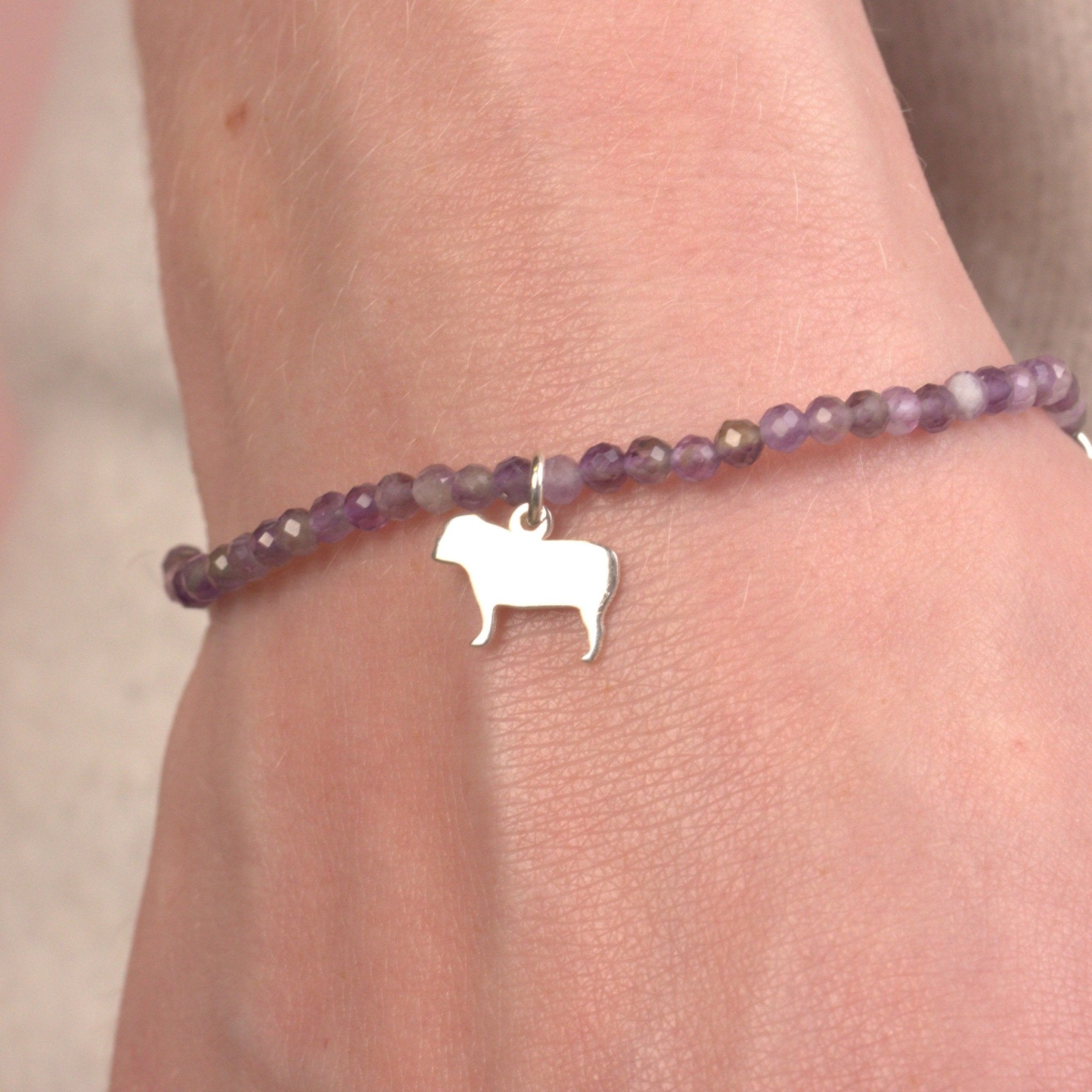 Celebrate your beloved English Bulldog with this personalised English Bulldog Silhouette bracelet made with your choice of semi precious stones. Whether it’s a thoughtful birthday gift for a dog mum or a heartfelt keepsake for a pet parent, this bracelet is a beautiful way to honour the special bond you share. Choose from a Black Onyx, Rose Quartz, Red Aventurine, Amethyst, Opal or Turquoise bracelet.