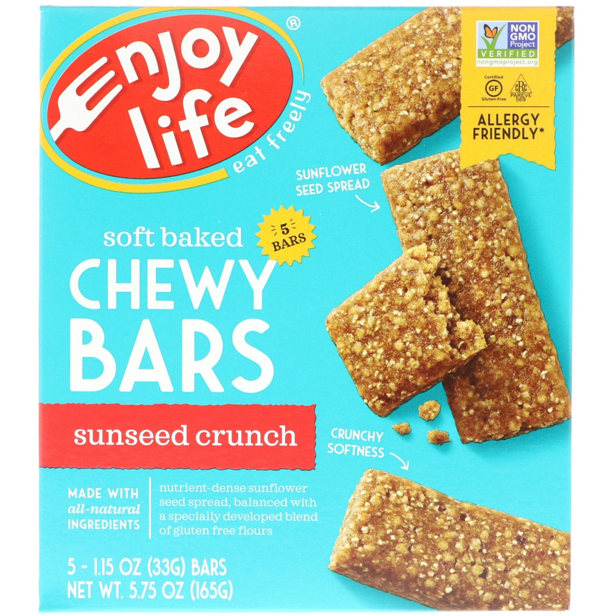 Enjoy Life Foods, Soft Baked Chewy Bars, Sunseed Crunch, 5 Bars, 1.15 oz (33 g) Each