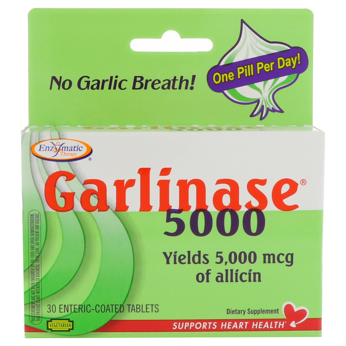 No Garlic Breath! One Pill Per Day! Yields 5,000 mcg of Allicin Vegetarian Dietary Supplement Supports Heart Health Garlic Extract Reap the rewards of garlic... Delivers 5,000 mcg of allicin, fresh garlic's most beneficial compound. Enteric-coated tablets reach the small intestine, so you get garlic where you need it, and avoid garlic breath. Supports heart health Contains 320 mg garlic, with just 1 tablet daily! And keep your fresh breath, too! Why non-aged garlic is best... Allicin is the key compound found in non-aged garlic. Allicin acts an antioxidant and helps support cardiovascular health. In fact, Aged Garlic: Yields no beneficial allicin. Dissolves in the stomach, destroying any chance of allicin reaching the bloodstream. Is artificially aged in accelerated process, destroying garlic's most beneficial compound. Supports healthy cholesterol. Maintains healthy cholesterol levels that are already within the normal range.