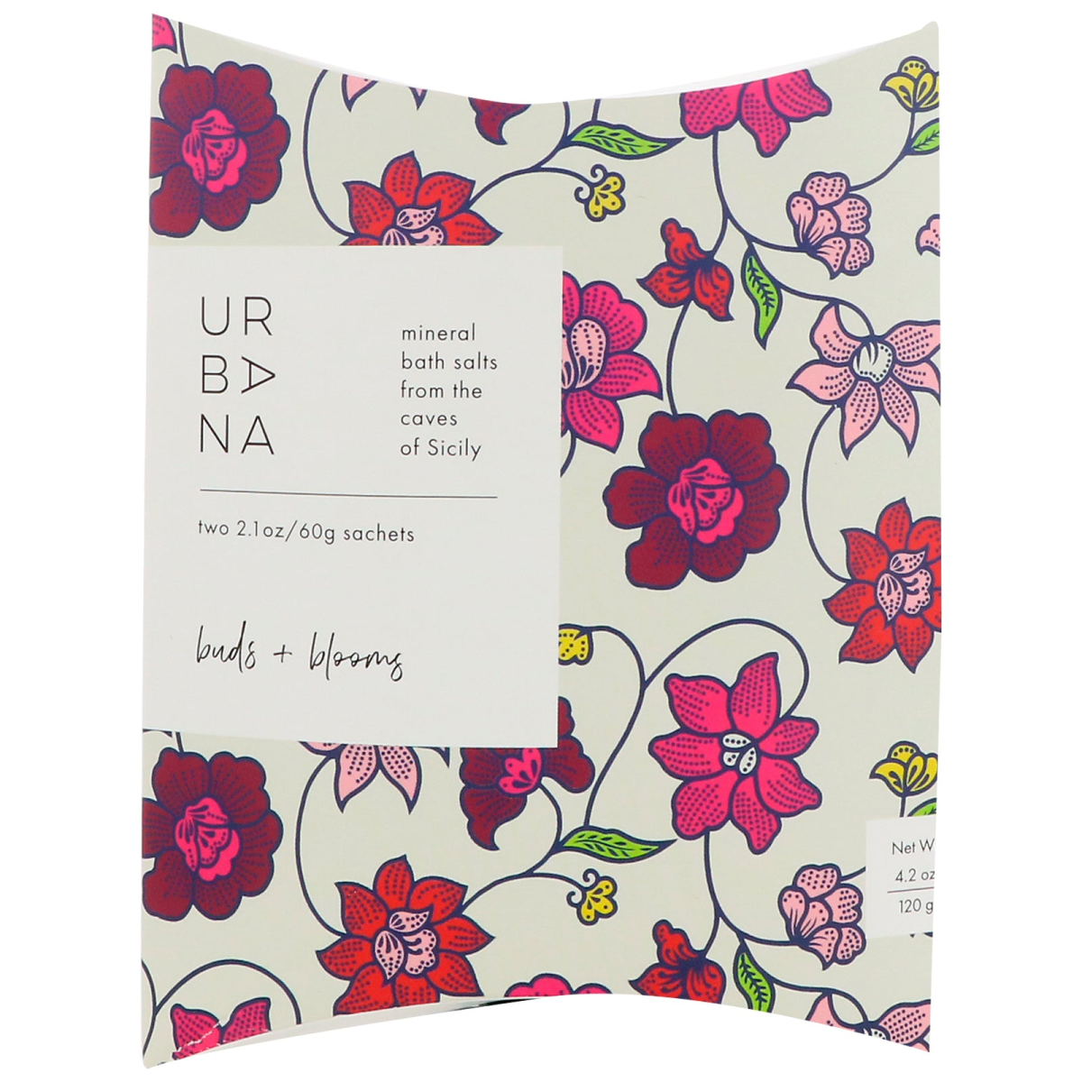 Mineral Bath Salts From the Caves of Sicily Urban Nirvana Create a spa in the comfort of your own home. Use one sachet to transform your bath with natural mineral salts from the caves of Sicily. Experience the fresh and flora fragrance of Buds + Blooms; rose, cedar, ylang ylang, musk and amber.