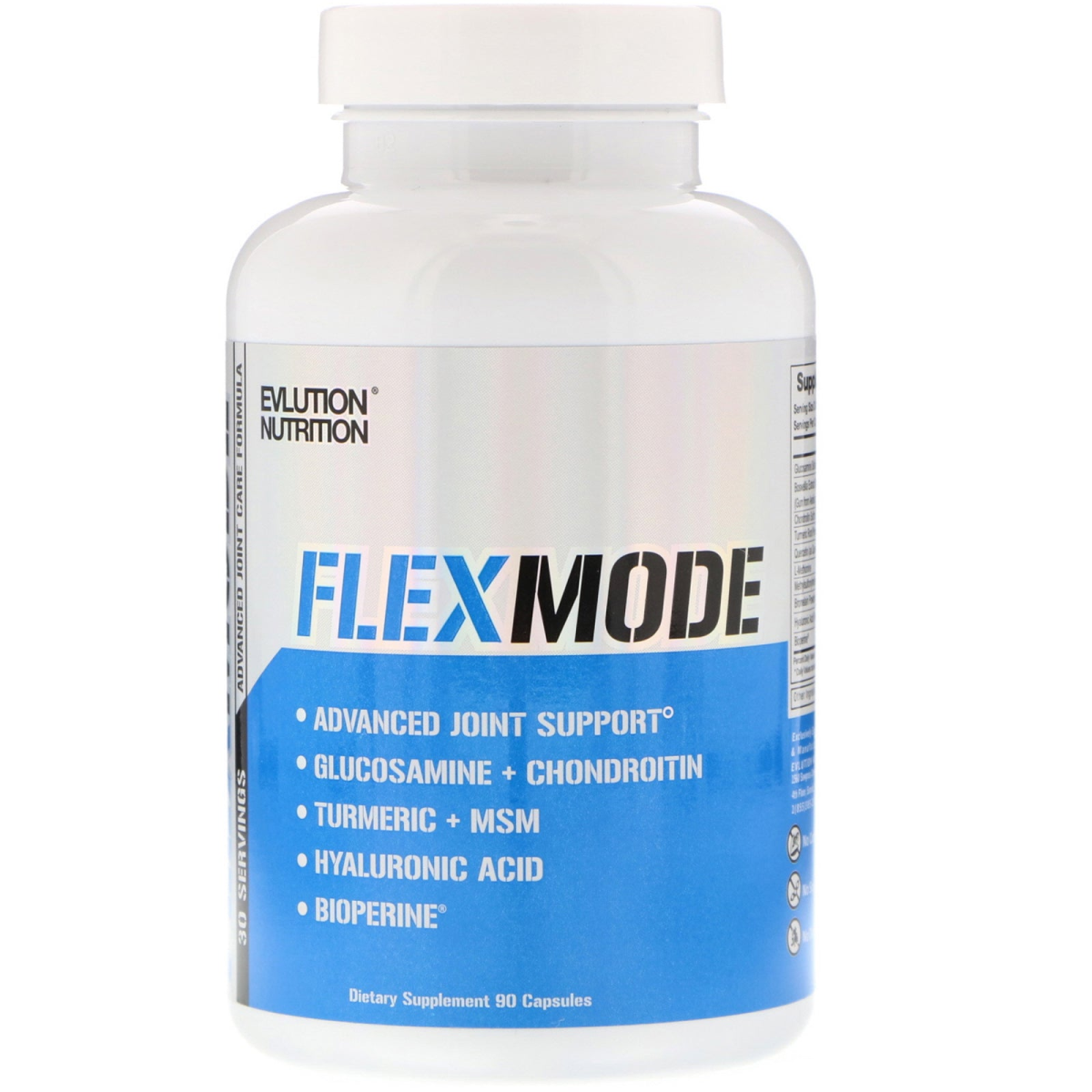 30 Servings Glucosamine + Chondroitin Turmeric + MSM Hyaluronic Acid BioPerine Dietary Supplement No Corn No Wheat No Soy cGMP No Dairy Gluten Free FlexMode, when combined with a healthy and active lifestyle is designed to support: Joint Health Cartilage Joint Mobility Joint Lubrication