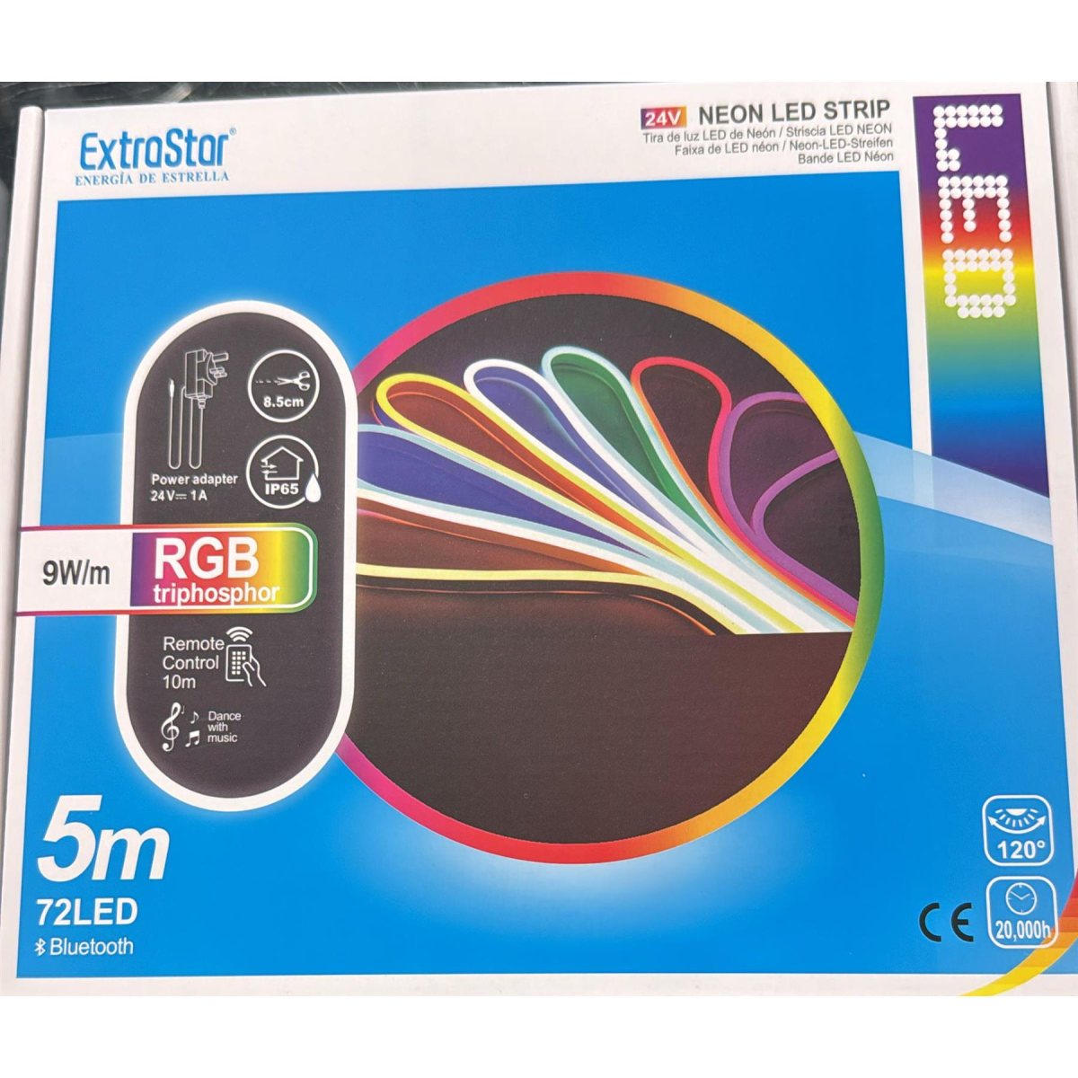 ExtraStar Neon LED Strip 5M Cable with Power Adapter andRemote Control, 9W/M, RGB
