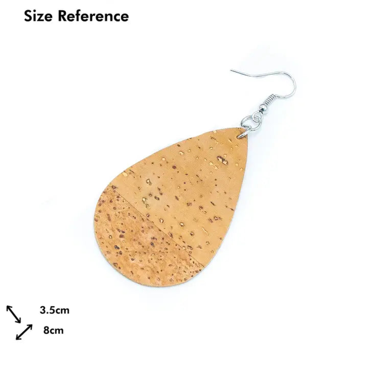 Discover our beautiful drop-shaped cork earrings wrapped in natural cork, to showcase a distinctive oak texture that enhances your everyday style. These organic earrings provide the natural aesthetic you’ve been seeking. Whether you want to add a pop of colour or a lovely detail to your outfit, these earrings are the perfect choice! Crafted from high-quality zamak and cork, they combine durability with charm.
