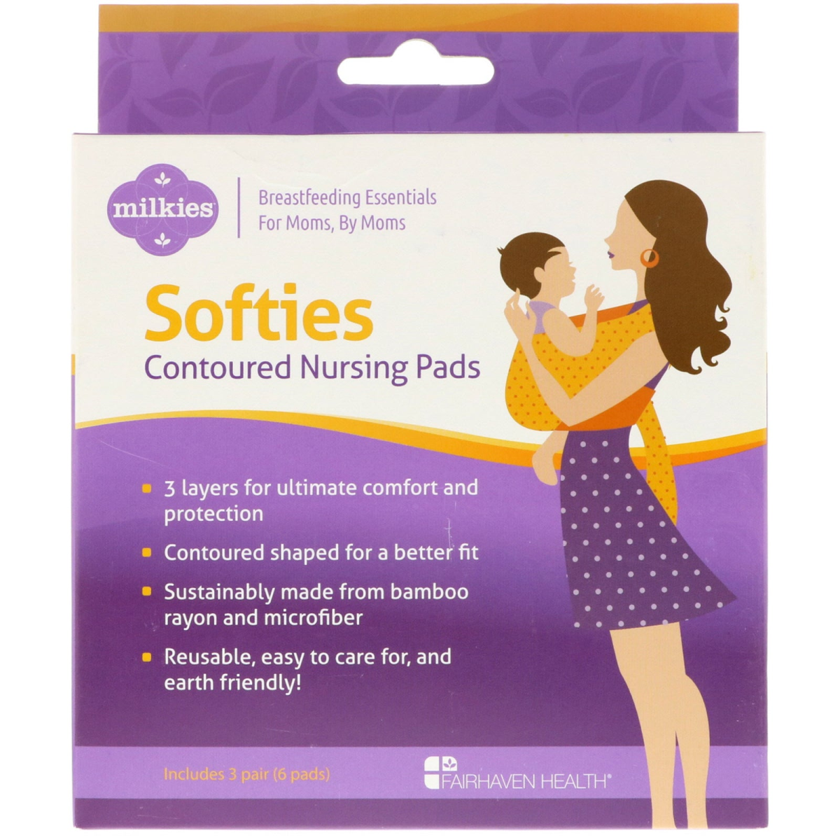 Fairhaven Health, Milkies, Softies, Contoured Reusable Nursing Pads, 3 Pairs (6 Pads)
