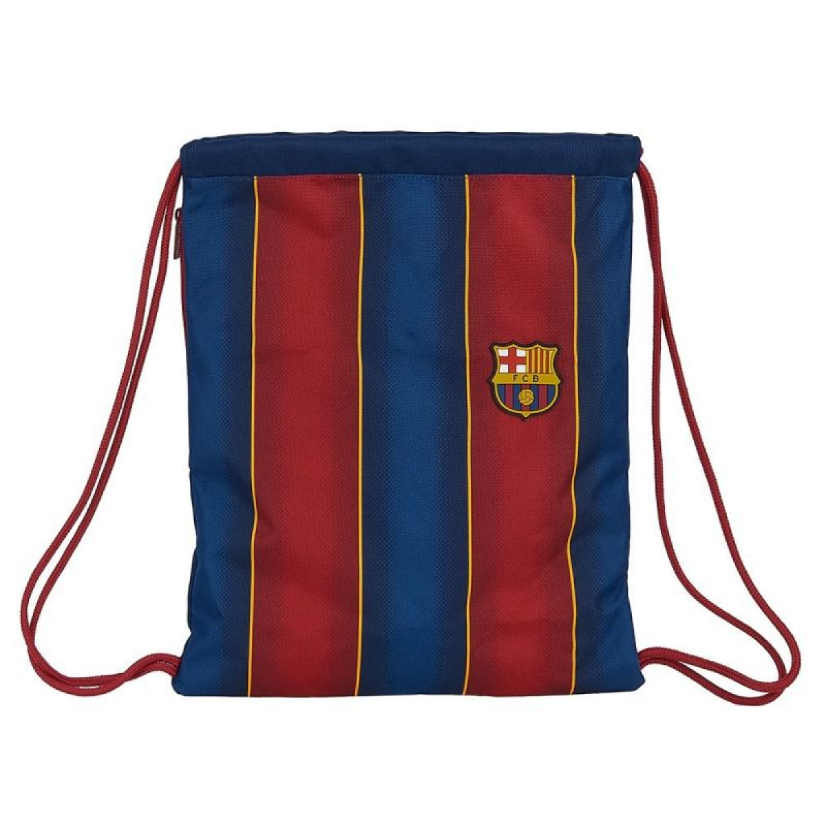 An official, licensed product of FC BARCELONA football club. This bag is perfect for the true fan. Highly functional, lightweight, and perfect for a variety of occasions: training, school, travel, swimming pools, and more. The main compartment closes with double drawstrings, and there's an additional zippered pocket on the side. This sports bag, perfect for expressing your support for your favorite team, conveniently carries essential items. Perfectly matched colors highlight its unique design. This bag is meticulously crafted with meticulous attention to detail. This product includes a full set of manufacturer's tags and original packaging. Material: 100% polyester. Dimensions: 45 x 35 cm.