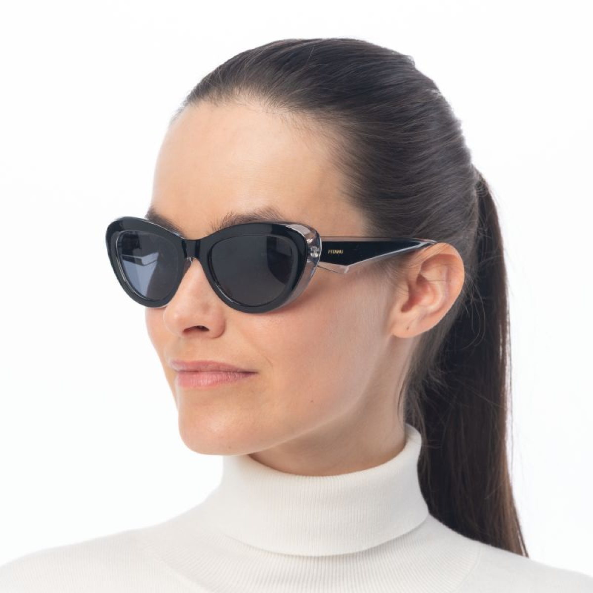 SUNGLASSES SIZE: 52□20 145 MATERIAL COMPOSITION: FRAME: G850 (RECYCLED POLYAMIDE) LENSES: 1.0 mm TAC SPECIFICATION: - UV 400 - UV 3 FILTER - POLARIZATION - ANTI-OIL COATING - RECYCLED MATERIALS
