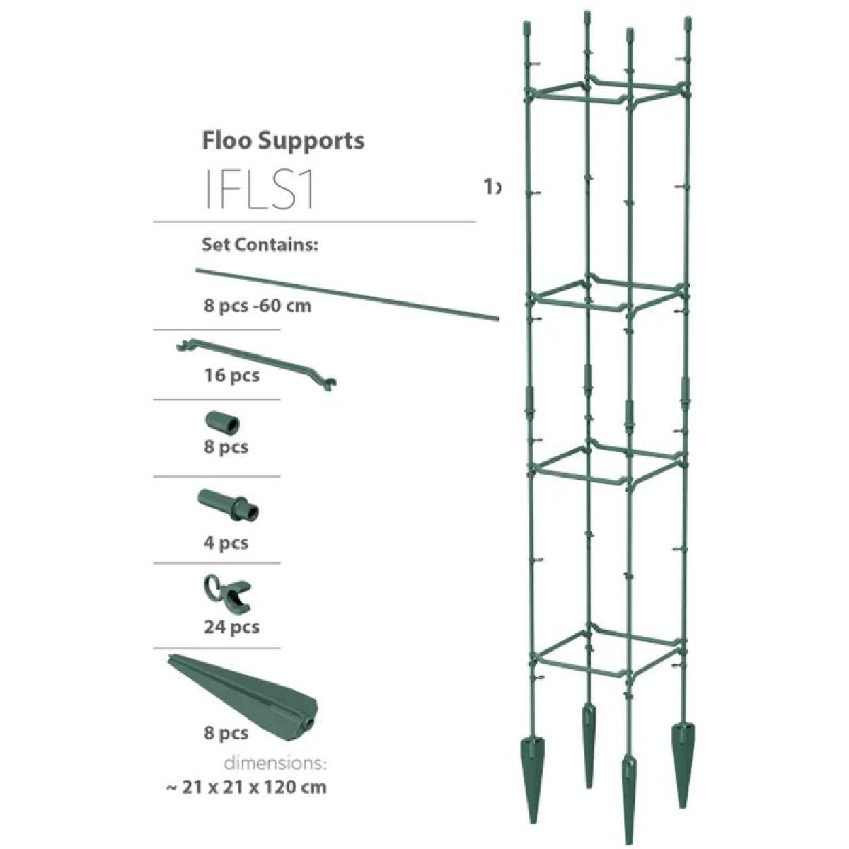 The FLOO SUPPORTS PLANT SUPPORT 21x21x120CM is a functional set that allows you to create various structures to support climbing plants in your garden. Depending on your needs, you can build a tall, flat vertical support or structures of varying heights. Made of durable material in a forest green color, it blends perfectly with garden vegetation.