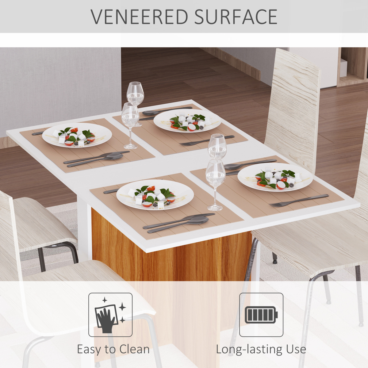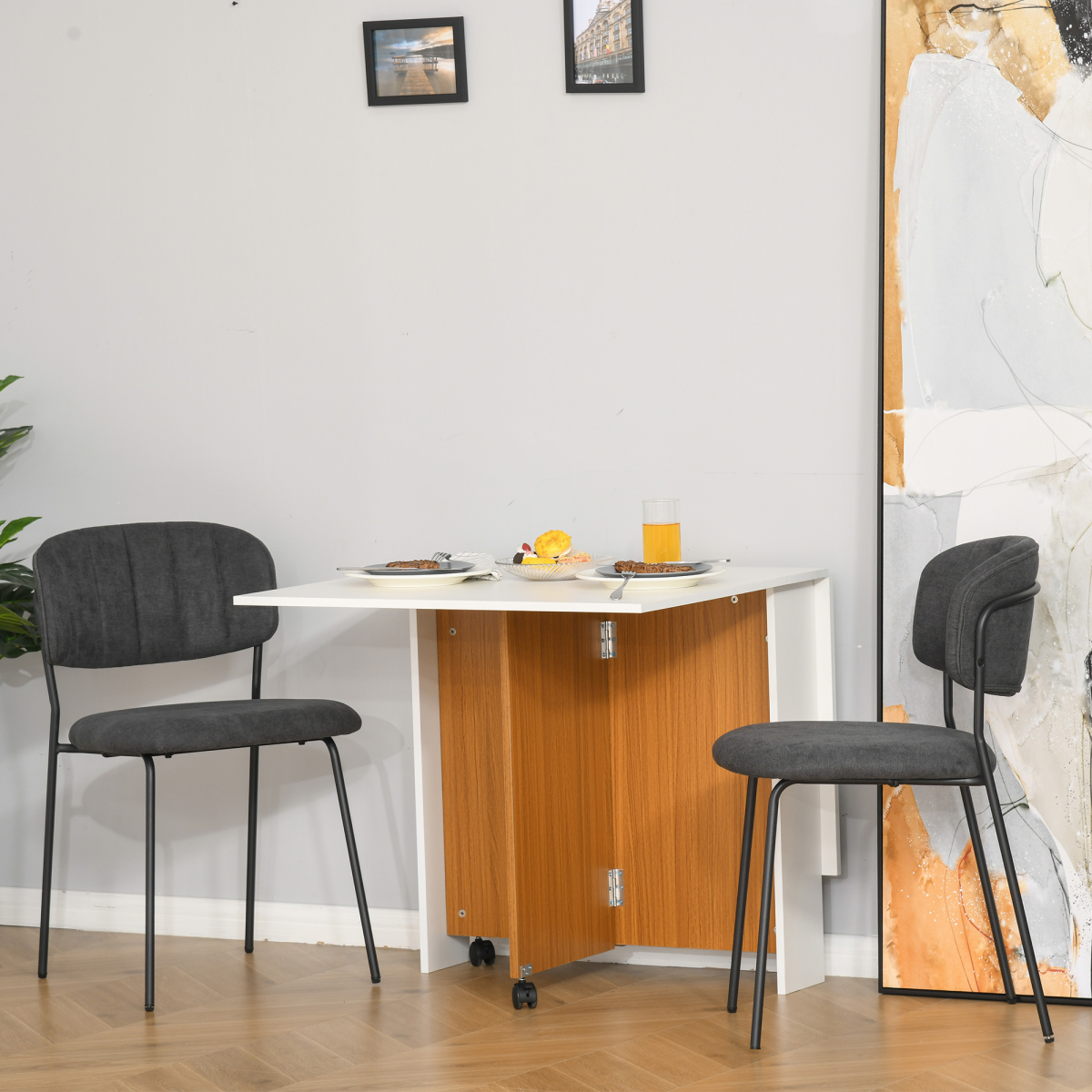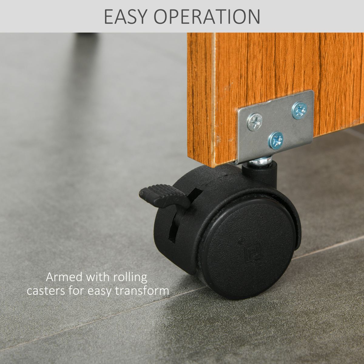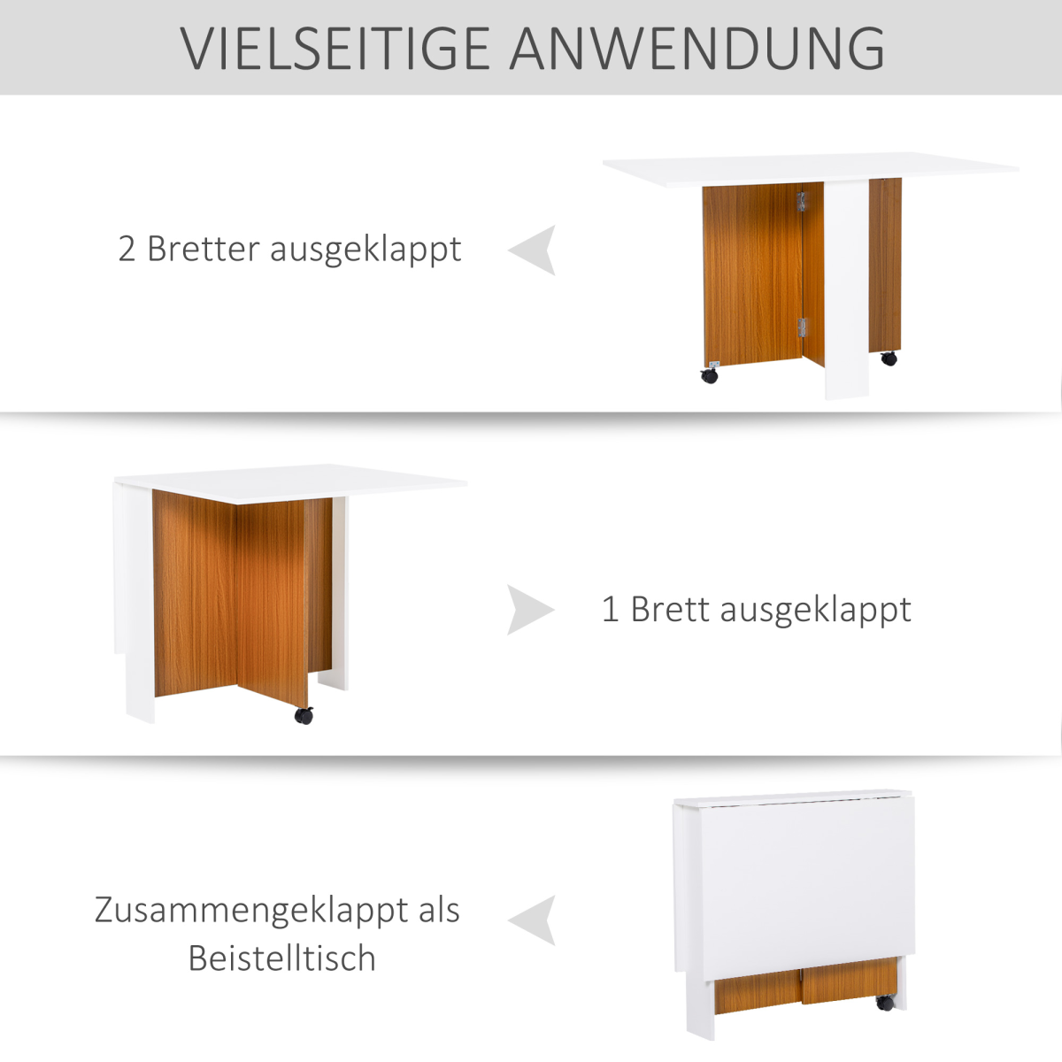 Folding Drop Leaf Table Dining Mobile Writing Desk with Casters - Teak/White"