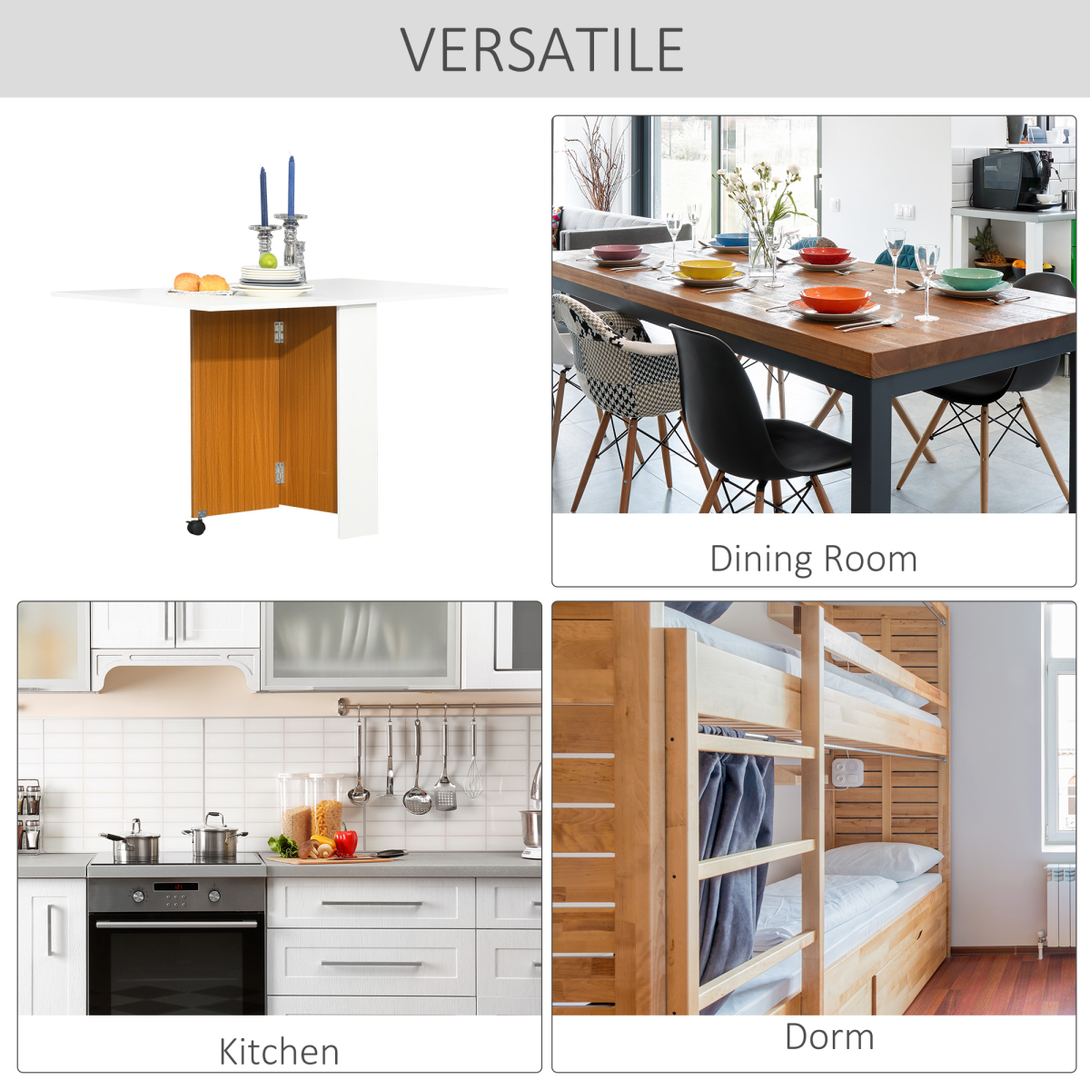 Folding Drop Leaf Table Dining Mobile Writing Desk W/ Casters-Teak/White