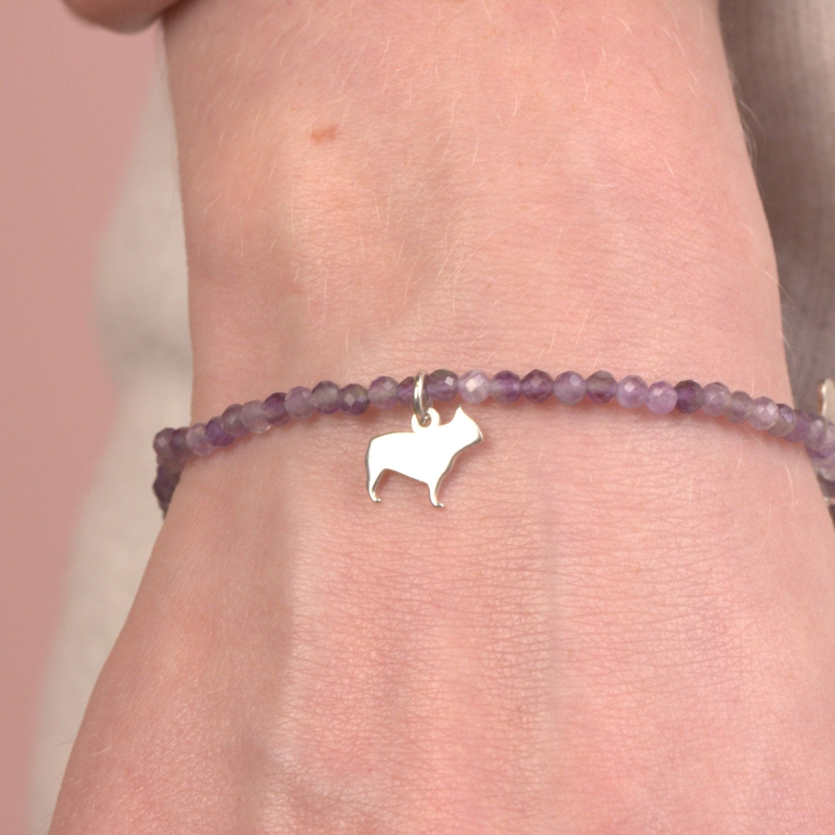 Celebrate your beloved Frenchie with this personalised French Bulldog Silhouette bracelet made with your choice of semi precious stones. Whether it’s a thoughtful birthday gift for a dog mum or a heartfelt keepsake for a pet parent, this bracelet is a beautiful way to honour the special bond you share. Choose from a Black Onyx, Rose Quartz, Red Aventurine, Amethyst, Opal or Turquoise bracelet.