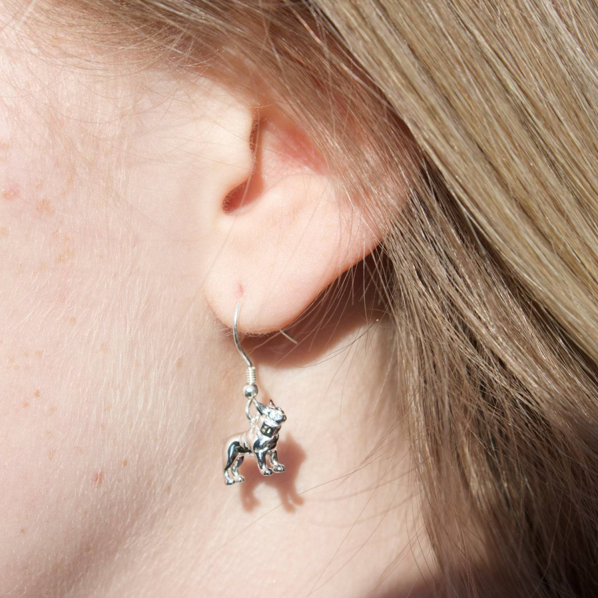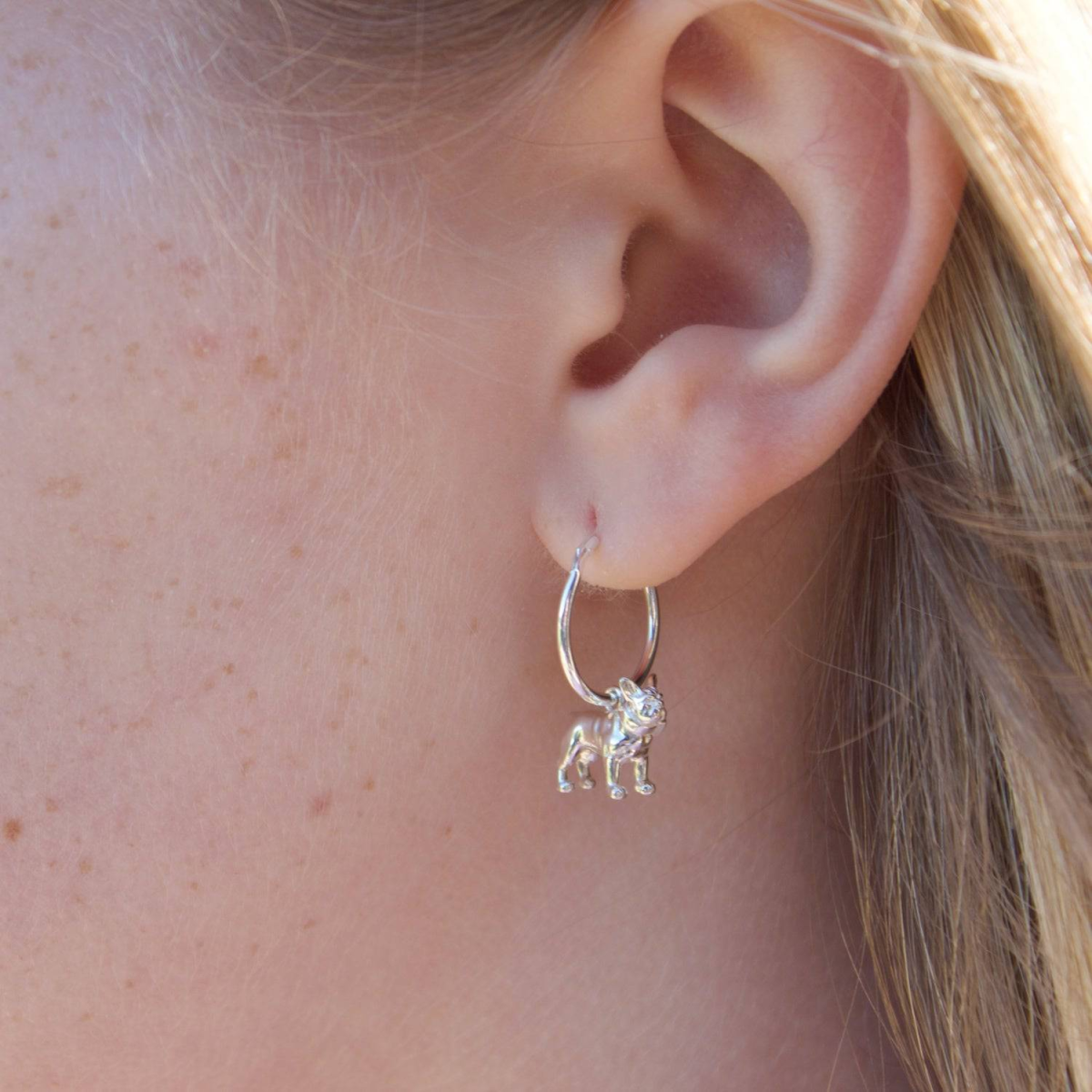 Celebrate your love for Frenchie's with our French Bulldog Earrings, a beautifully crafted keepsake designed for dog lovers. Choose from either a Hook or a Huggie hoop style earring to best fit your preference. These high-quality 925 sterling silver earrings feature detailed pendants that showcase the classic characteristics of these adorable companions and are guaranteed to brighten your day. A perfect gift for French Bulldog owners, dog lovers, or anyone who appreciates sterling silver jewellery.