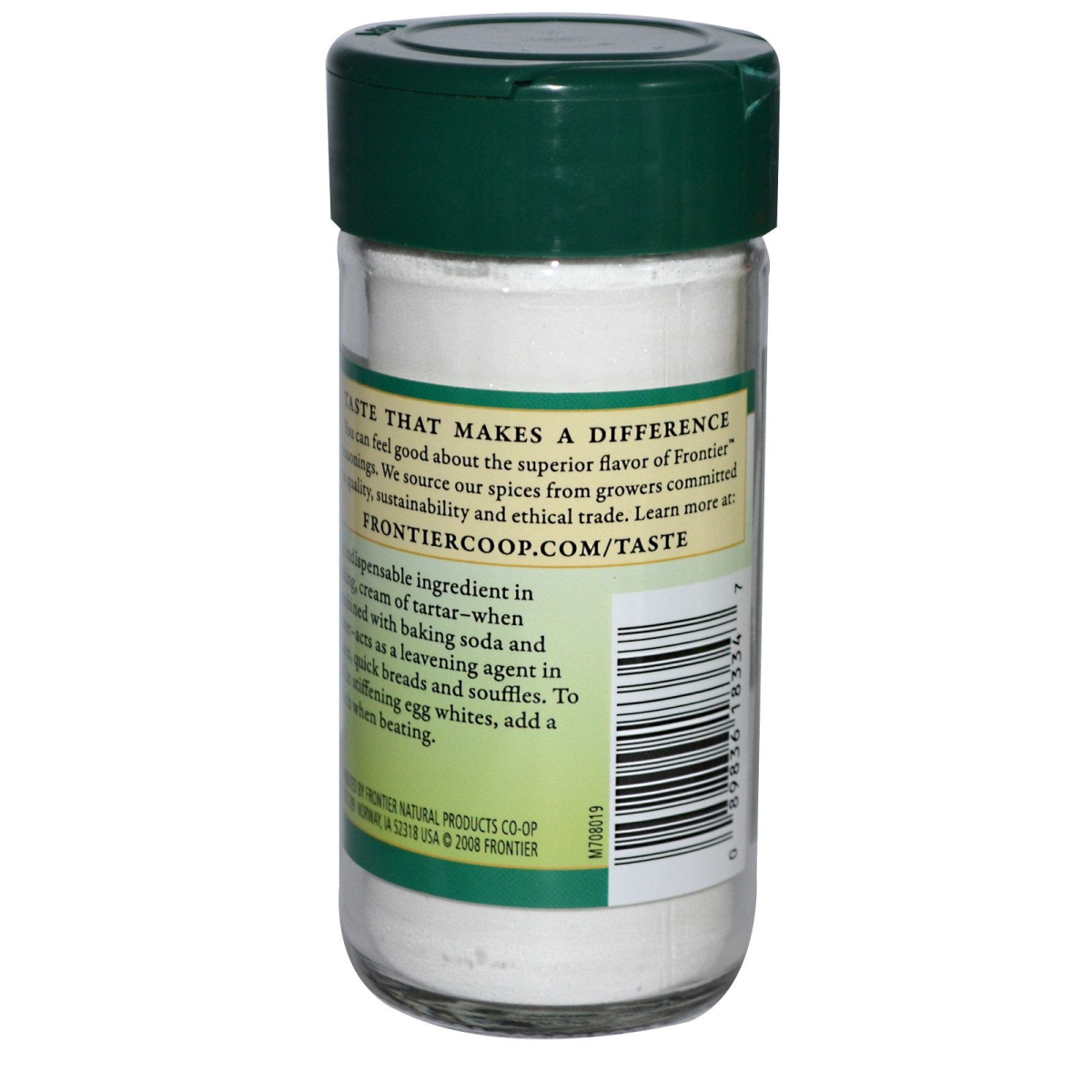 All-Natural Kosher Freshness Dated Non-Irradiated Taste That Makes A Difference You can feel good about the superior flavor of Frontier seasonings. We source our spices from growers committed to quality, sustainability and ethical trade. An indispensable ingredient in baking, cream of tartar—when combined with baking soda and water—acts as a leavening agent in cakes, quick breads and souffles. To aid in stiffening egg whites, add a pinch when beating.
