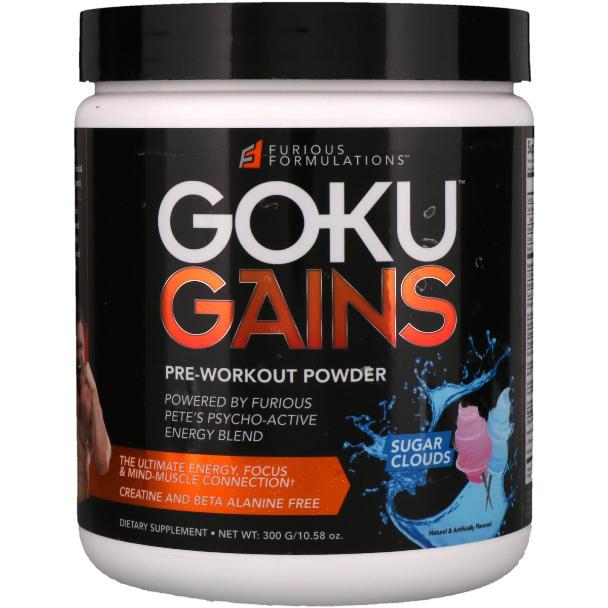 Powered by Furious Pete's Psycho-Active Energy Blend The Ultimate Energy, Focus & Mind-Muscle Connection Creatine and Beta Alanine Free Dietary Supplement Natural & Artificial Flavored One Furious Pre-Workout to Dominate Them All! TeaCrine Nitrosigine elevATP Pete's lifestyle is hectic and furious. Yes his mantra, "Dedicated for Life," remains an anchor. That includes dedication to his over 5-million followers in social media, and why Pete formulated his own Pre-workout-for you. As you'd expect, Pete's taken the meaning of a "pre-workout" to another level with GokuGains. After countless prototypes, Pete hand-selected every ingredient for a specific purpose (including some ingredients you've likely never heard of), and ensured that each one is scientifically dosed to provide you with maximum gains. With Furious Pete's GokuGains, you can count on a pre-workout that goes beyond furious - to provide a psycho-active energy surge, sending your muscles into anabolic overdrive, while creating the ultimate mind-muscle connection. Now, you're one scoop away from the furious experience!