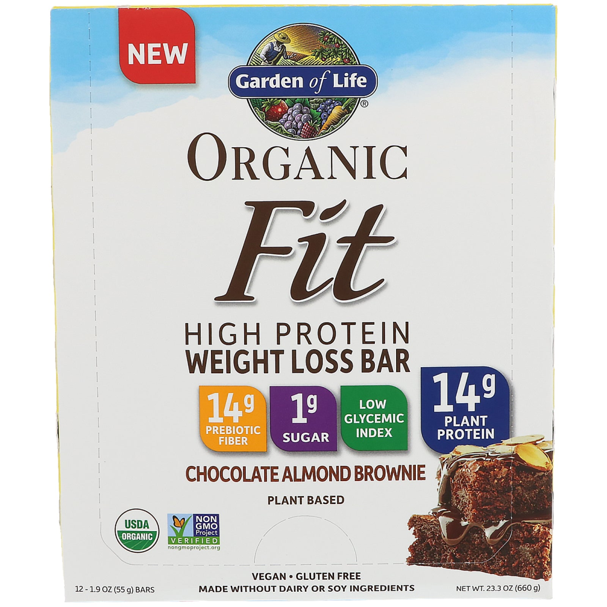 14 g Prebiotic Fiber 1 g Sugar Low Glycemic Index 14 g Plant Protein Plant Based USDA Non GMO Project Verified Made Without Dairy or Soy Ingredients Burn Fat • Satisfy Hunger • Fight Cravings Certified Vegan Informed-Choice.Org - Trusted by Sport Certified Gluten-Free Certified B Corporation Certified by QCS Whether you're thinking about shedding a few pounds or just simply want to stay fit, our Fit bar is a delicious way to enhance your diet and exercise program. With 225 mg Svetol Green Coffee Bean Extract and 150 mg Ashwagandha to help burn fat and fight cravings. Garden of Life is the #1 Brand¹ in the natural products industry and we've always believed in the health benefits of clean, certified whole foods. We are very selective with what goes in our products - true, whole food ingredients. We also pay very close attention to what we keep out of them - offering Truly Clean Nutrition. Empowering Extraordinary Health Burn Fat • Satisfy Hunger • Fight Cravings Our Plant Based Fit High Protein Weight Loss Bars taste decadent and indulgent, but provide low glycemic, high protein support as part of your daily success plan. Burn fat with Svetol green coffee bean extract. Fight cravings with Ashwagandha. Satisfy hunger and feel full longer with 14 g of prebiotic fiber. Use our Fit High Protein For Weight Loss System as part of your personalized diet and exercise program. Our delicious Raw Fit High Protein For Weight Loss Powders are both Certified USDA and Non-GMO Project Verified, making them the #1 protein powders sold in health food stores. (SPINSscan 52 weeks ending 06/18/17)¹.