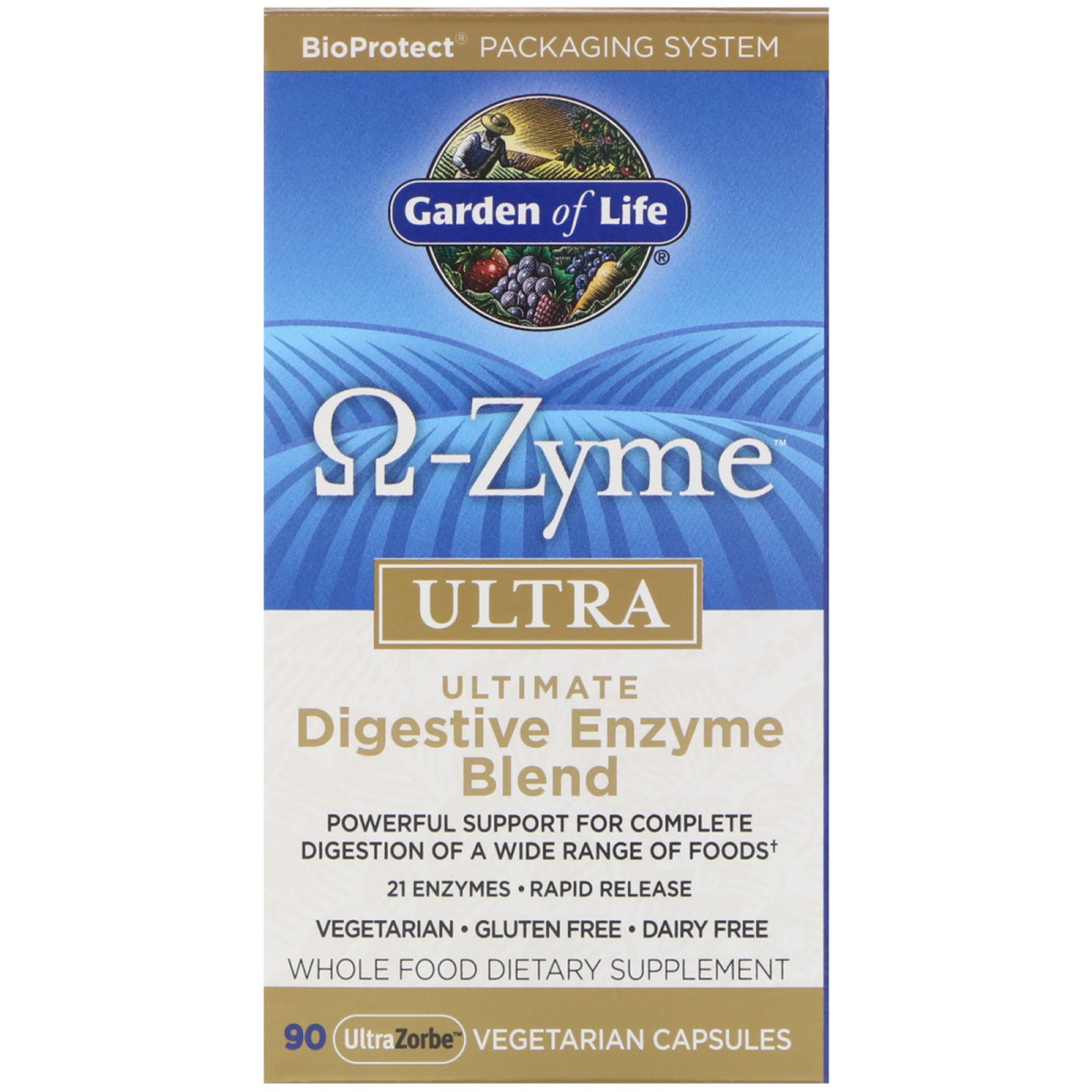 BioProtect Packaging System Whole Food Dietary Supplement Powerful Support For Complete Digestion of a Wide Range of Foods†21 Enzymes Rapid Release Vegetarian • Gluten Free • Dairy Free Ultimate Digestive Enzyme Blend The Digestive Health Connection All Organs and systems rely on the health of the digestive tract. Proper digestion is essential for the body to absorb and utilize the nutrients it needs. In addition, 75% of the cells necessary for the immune system to function effectively are connected to the gastrointestinal tract. Enzymes: Key to Good Digestion Enzymes are living catalysts and the key to good digestion. Present in all whole live foods but destroyed by cooking and processing, digestive enzymes break down foods into nutrients that your body can then readily absorb and utilize. Broad Spectrum Activity You've got a wide range of foods on your plate and some are difficult to digest. That's why you want Ω Zyme Ultra. With 21 vegetarian enzymes, Ω Zyme Ultra promotes complete digestion of the proteins, carbohydrates and fats in your food, helping you unlock their nutritional value. Broad-Spectrum, Specialized Support for Digestion of Foods Containing Gluten, Dairy (Lactose and Casein), Phenols and Vegetable Fibers. pH Optimized Enzyme Support for the Entire Digestive Tract Supports Overall Digestive Function