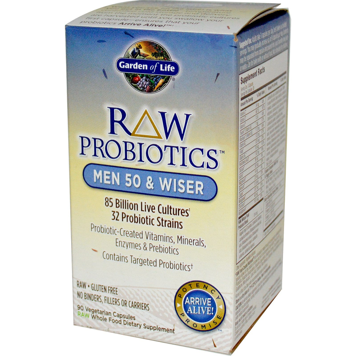 85 Billion Live Cultures¹ 32 Probiotic Strains Probiotic-Created Vitamins, Minerals, Enzymes & Prebiotics Contains Targeted Probiotics RAW Gluten Free No Binders, Fillers or Carriers Potency Promise - Arrive Alive! RAW Whole Food Dietary Supplement Arrive Alive! Potency Promise What you see on the label is what you get in the bottle—temperature controlled cold storage and delivery from the moment the probiotic cultures are harvested until you swallow your first capsule—ensures that your probiotics Arrive Alive! RAW Probiotics The Next Generation of Digestive Health Garden of Life introduces RAW Probiotics—an innovation that goes Beyond Probiotics—whole food probiotic formulas providing 30+ powerful probiotic strains, along with probiotic-created cofactors including vitamins, minerals, enzymes, antioxidants and prebiotics. RAW means our probiotics are uncooked, untreated, unadulterated; with no binders or fillers and no carriers such as maltodextrin or dextrose. Original Probiotics Inspired by the Father of Probiotics, Elie Metchnikoff, RAW Probiotics provides probiotic strains found in Bulgarian Yogurt and Eastern European Wild Kefir—as recommended by Metchnikoff based on his study of Bulgarian longevity in the early 1900s and the probiotic-rich cultured dairy they consumed. RAW Probiotics provides RAW fruits and veggies sourced directly from the region where Metchnikoff made his probiotic discoveries. RAW Probiotics Men 50 & Wiser Colon Health Bowel Regularity Gut-Related Immunity Healthy Cholesterol Levels♦ Prostate Health Healthy Blood Sugar♦ Garden of Life RAW Probiotics Men 50 & Wiser is a RAW, full spectrum, whole food probiotic formula specifically designed to meet the unique needs of men over 50. RAW Probiotics Men offers 32 "original" probiotics specifically formulated for men over 50 to support immune function and maintain healthy cholesterol levels already in the normal range. RAW Probiotics Men 50 & Wiser also delivers probiotic-created vitamins, minerals and prebiotics as well as dairy-digesting enzymes to help break down lactose and casein. RAW Probiotics Men 50 & Wiser goes Beyond Probiotics offering a broad range of benefits specifically targeted for men over 50: Supports colon health, bowel regularity and overall digestive function Supports gut-related immune system function and overall immune system health Supports healthy microbial balance by promoting healthy bacteria in the gut Supports healthy nutrient absorption and assimilation Relieves occasional gas and constipation ♦ Helps maintain healthy blood sugar levels that are already in the normal range ♦ Helps maintain healthy cholesterol levels that are already in the normal range ¹ At end of Best Use Date under recommended storage conditions.