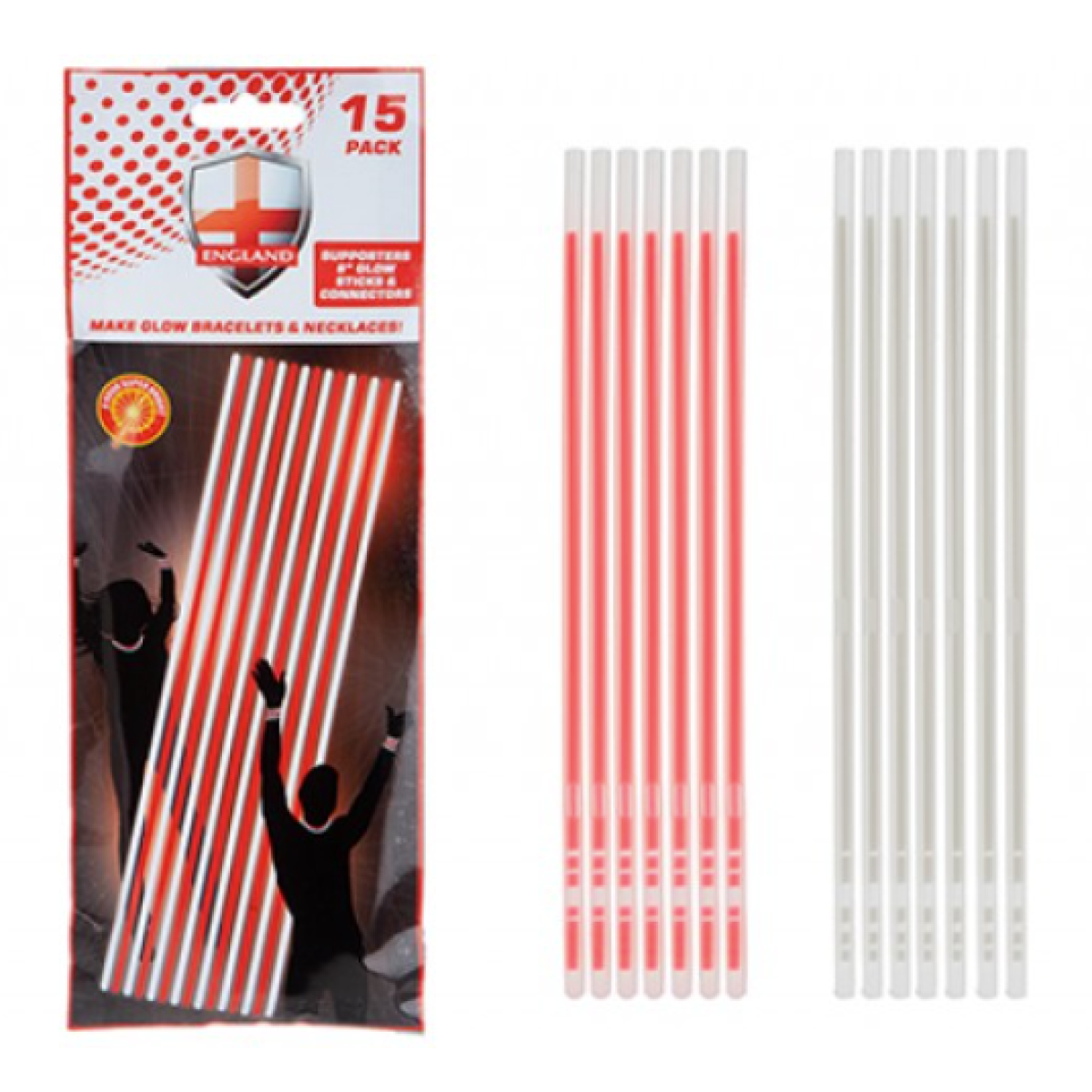 Generise 15PC 20cm X 5mm RED / WHITE GLOW STICK - 15 CONNECTORS FOIL BAG - 615048