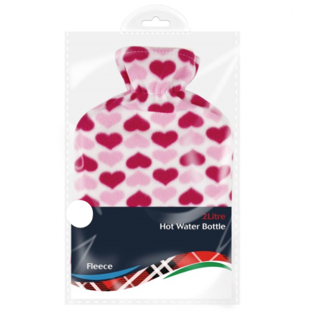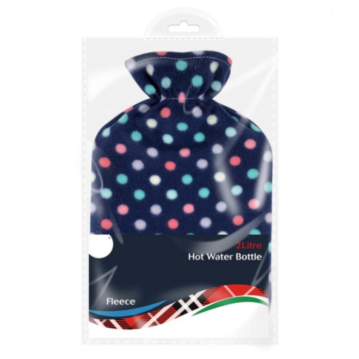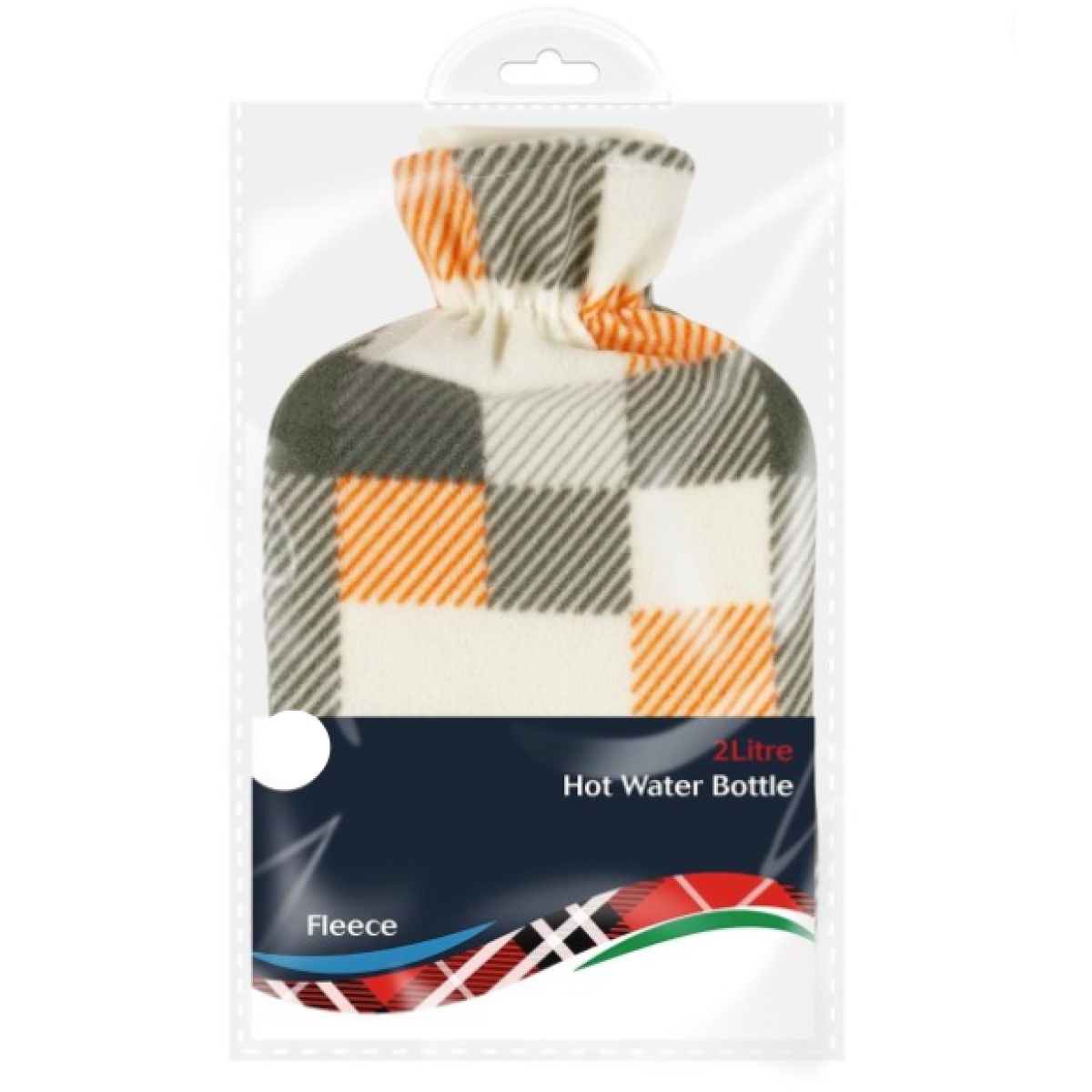 2-litre hot water bottles with soft fleece cover sold in bulk. Ideal for cold mornings or nights.