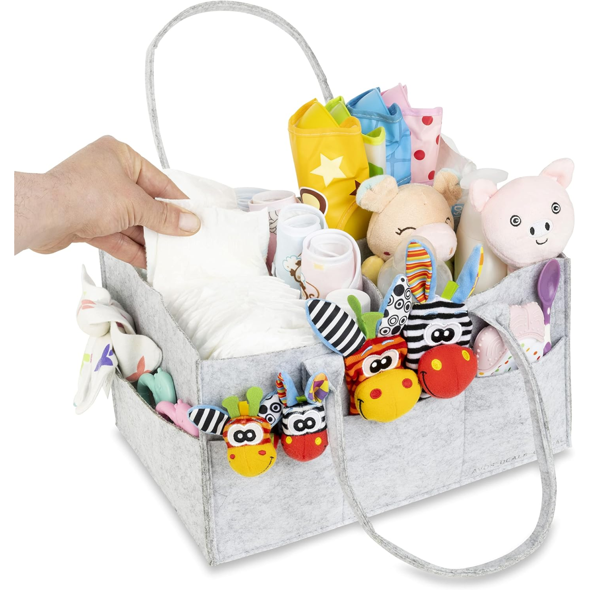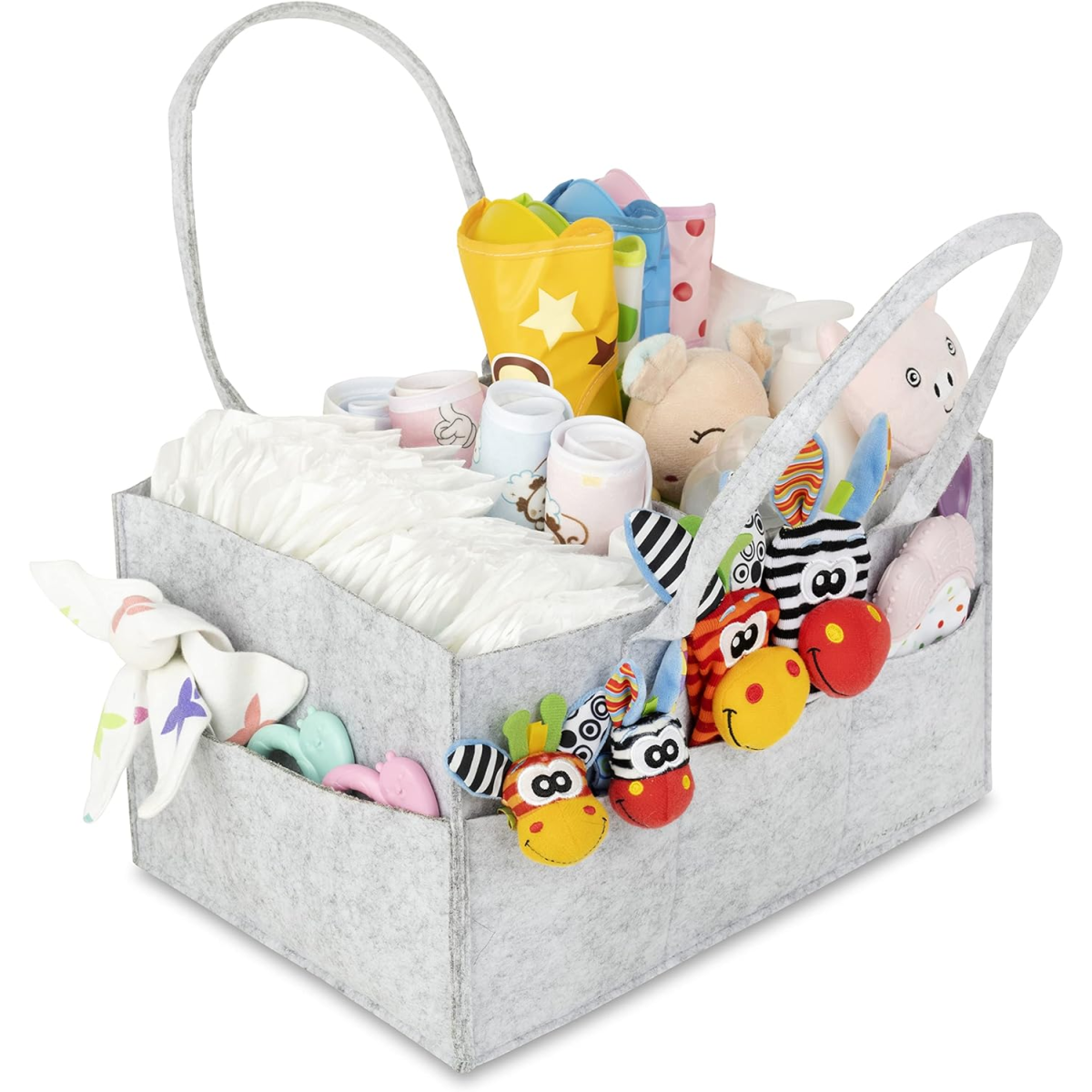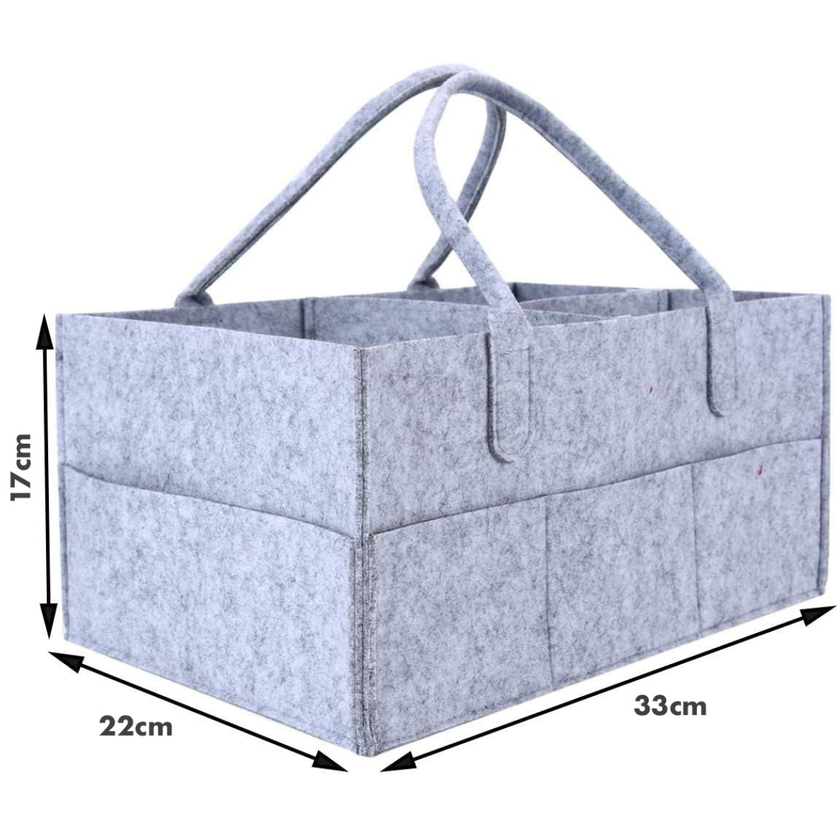 ? Spacious & Practical Measuring 33cm x 22cm x 17cm, this large-capacity caddy easily holds nappies, wipes, creams, bottles, toys, and more.