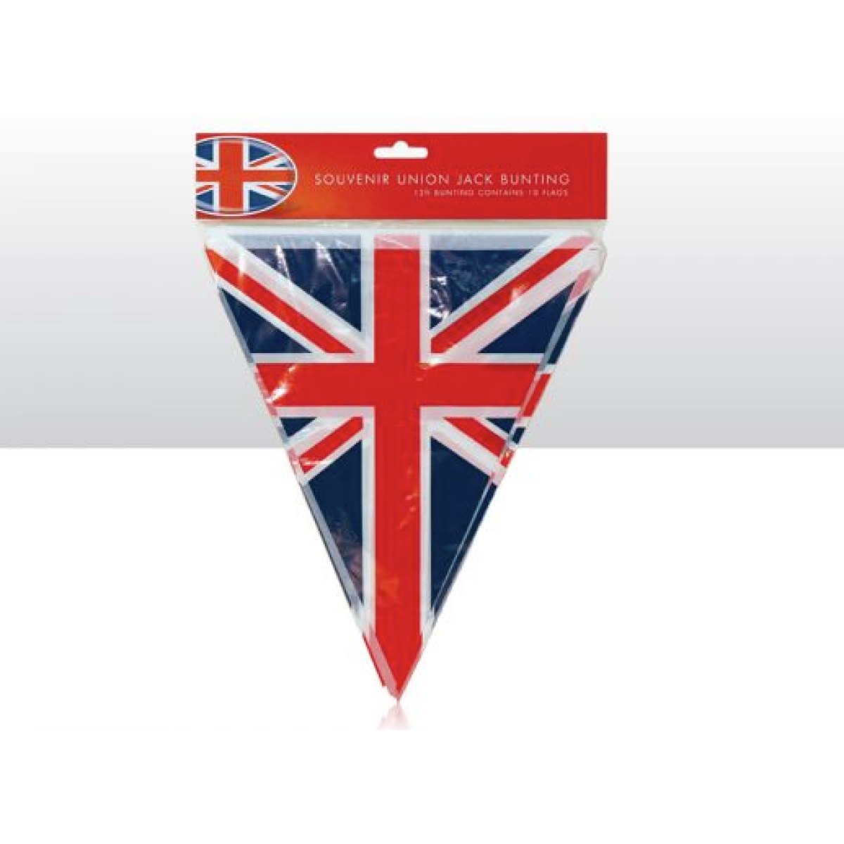 Union Jack PVC Bunting consists of 10 flags spaced over 12ft (3.6mtr) length. Great to use as decoration for events and parties.