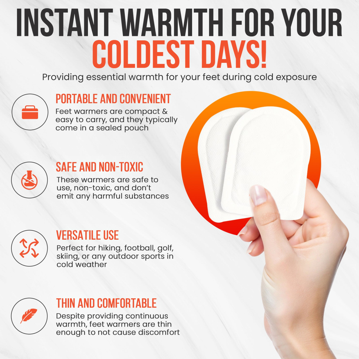 What are 'Handy Heater' Foot Warmers? Handy Heater Foot Warmers provide heat and comfort from the cold. They activate instantly once they are removed from their packaging and hit the air. They will rapidly warm up to a nice snug temperature and provide continuous heat for upto 10 hours!
