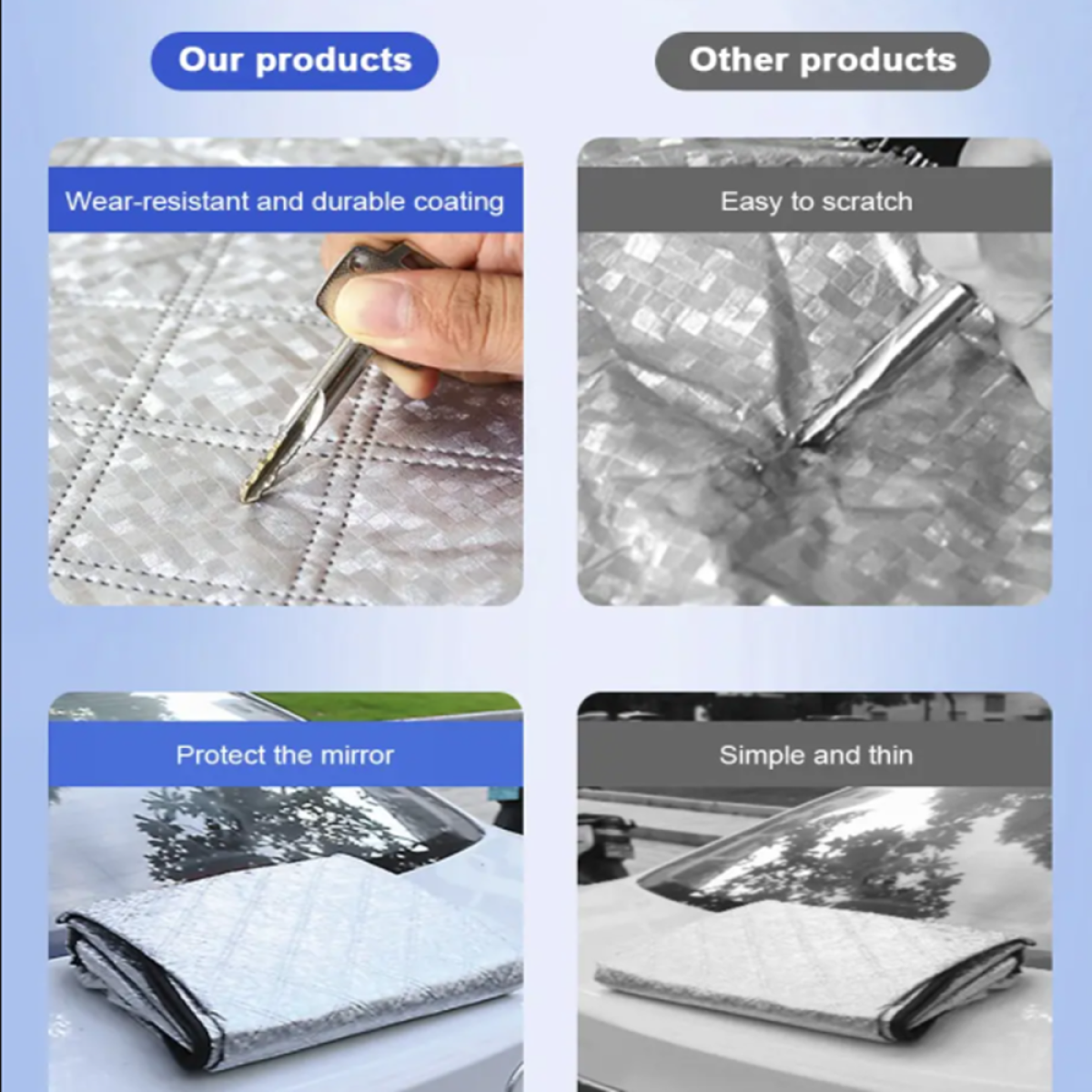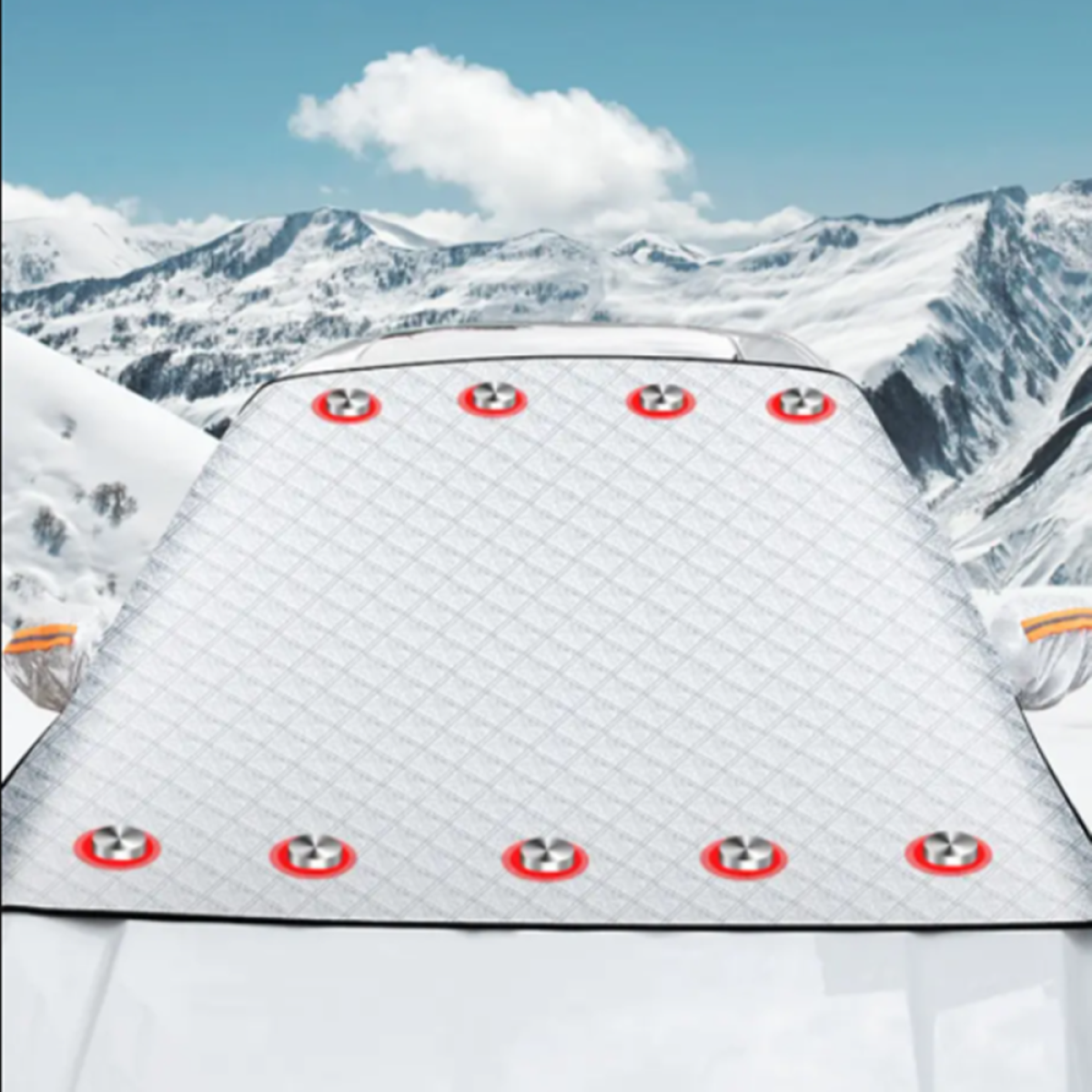 5.? ?You can also get an extra secure hold with the 9 built in magnets at the top and bottom of the windscreen cover fixing to the car metal. They are of sufficient strength to hold but will not cause any damage to the metal.