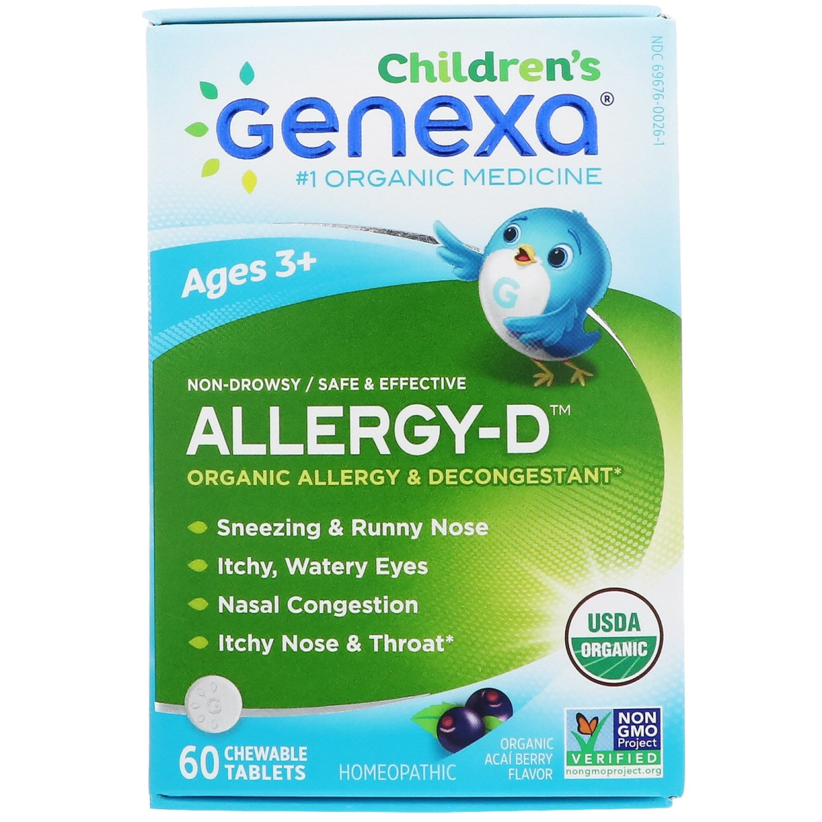 Genexa, Allergy-D for Children, Allergy & Decongestant, Acai Berry Flavor, 60 Chewable Tablets