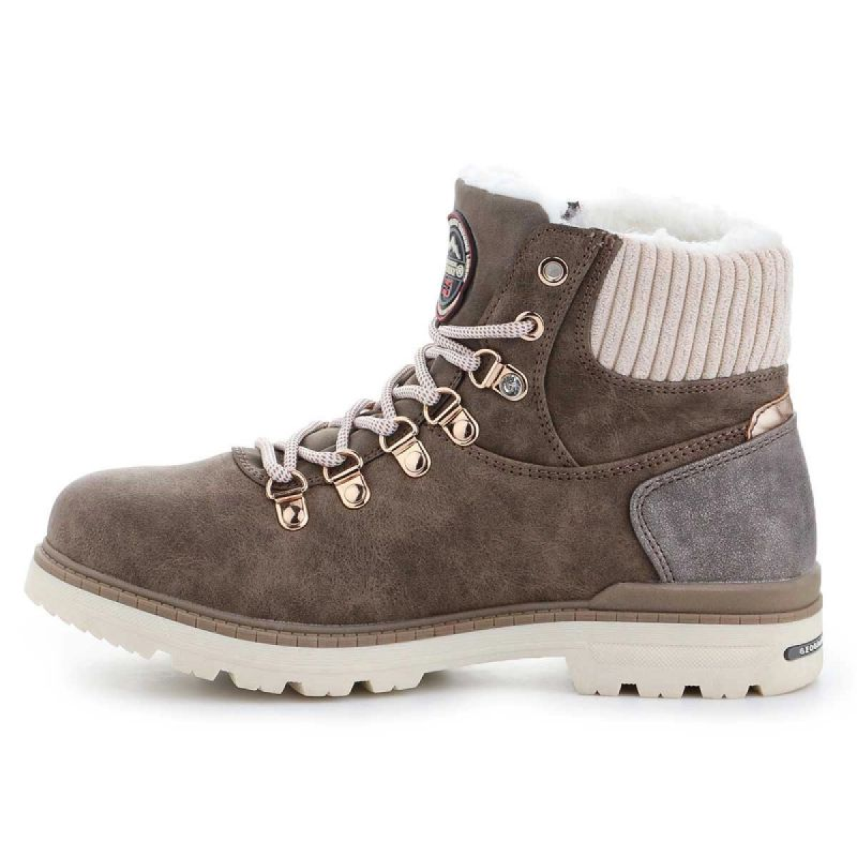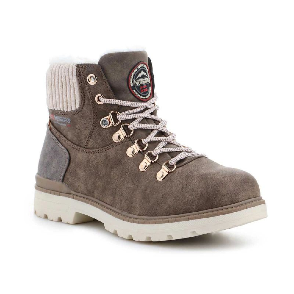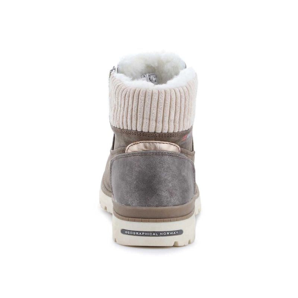 These women's boots from Geographical Norway, which reach just above the ankle, are lined with soft synthetic wool down, making them perfect for winter and autumn days. A soft collar protects against abrasion and guarantees comfort. They feature a lace-up upper made of eco-leather. They sit on a rubber sole for added traction. A gorgeous brown color!