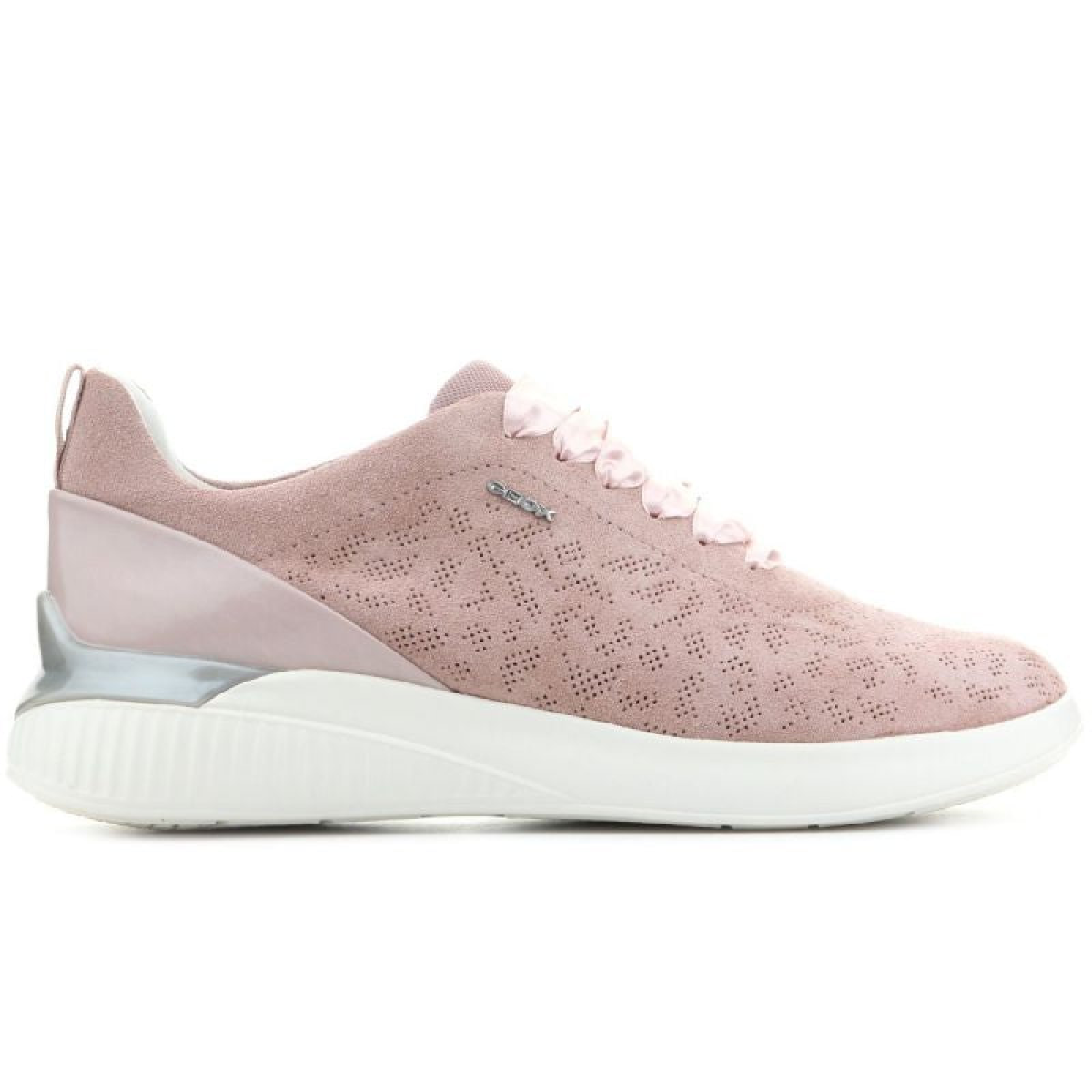 Women's footwear for the spring and summer season. The suede upper features a synthetic heel counter, adding a unique finishing touch to this model. An additional heel pull tab. Durable and grippy sole. Geox logo on the side of the upper. Geox Respira - a perforated sole that absorbs and expels sweat without allowing water to enter the shoe. The foot remains dry and at the right temperature.