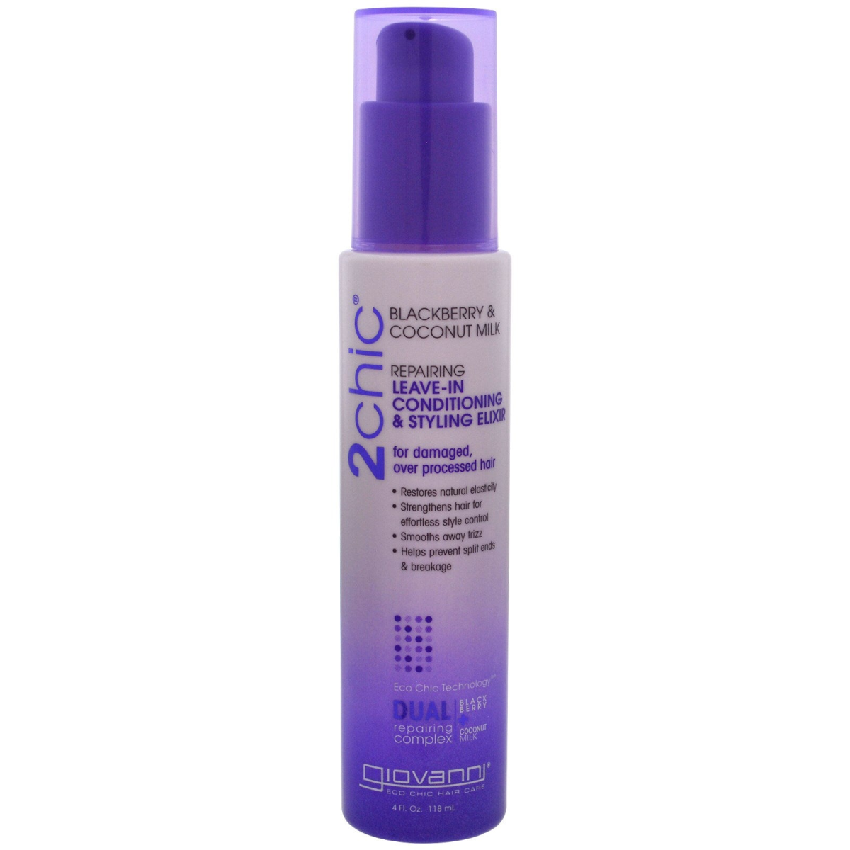 Giovanni, 2chic, Repairing Leave-In Conditioning & Styling Elixir, for Damaged Over Processed Hair, Blackberry & Coconut Milk, 4 fl oz (118 ml)