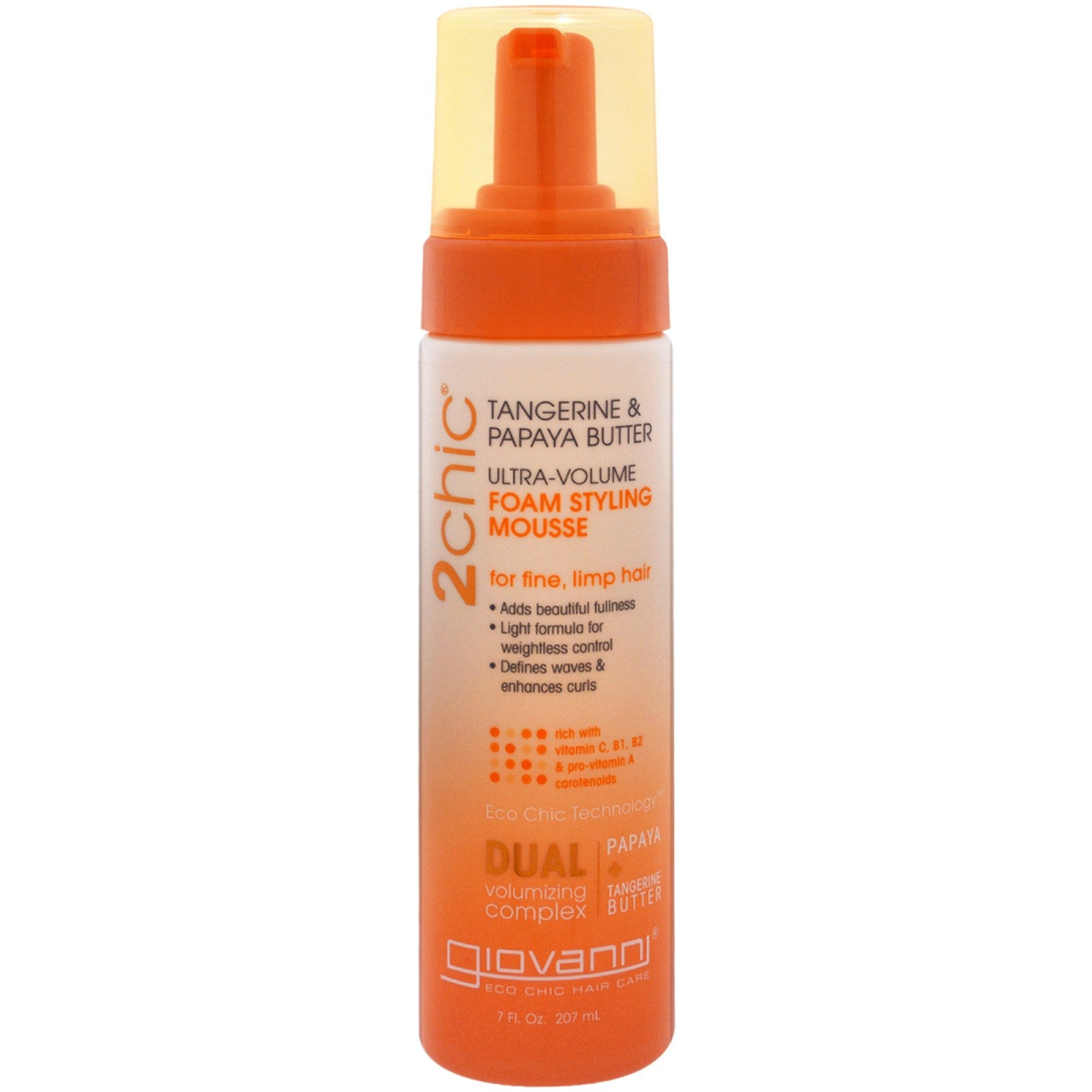 Giovanni, 2chic, Ultra-Volume Foam Styling Mousse, for Fine Limp Hair, Tangerine & Papaya Butter, 7 fl oz (207 ml)