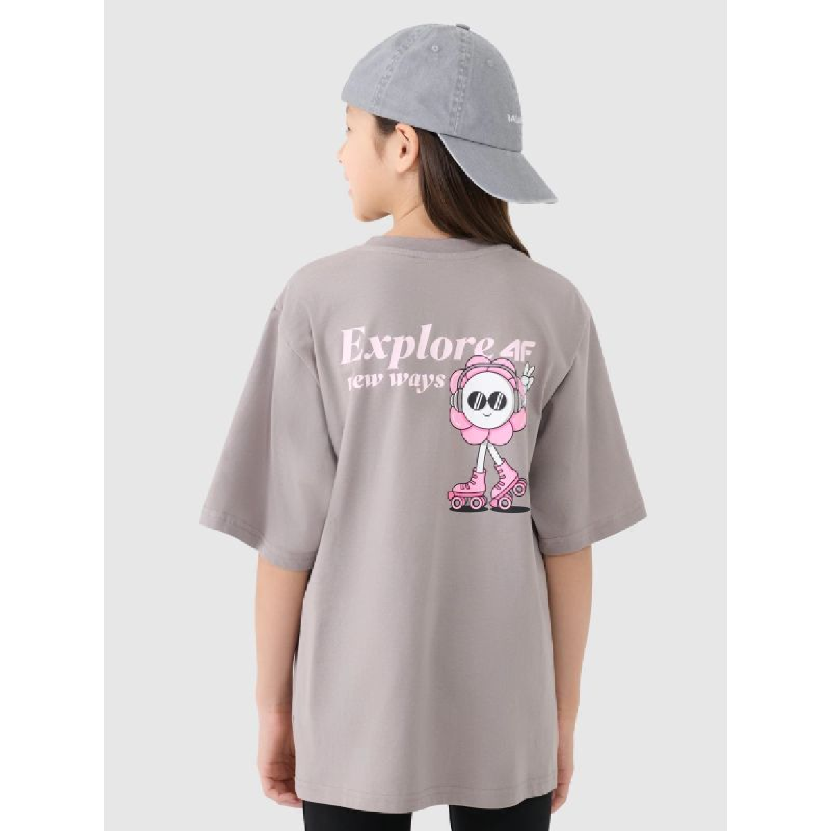 Girls' oversize T-shirt with print 4F 4FJRSS25TTSHF2586-83S